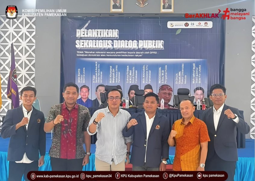 PAMEKASAN – Anggota Komisi Pemilihan Umum (KPU) Kabupaten Pamekasan Divisi Sosialisasi, Pendidikan Pemilih, Partisipasi Masyarakat, dan SDM (Sosdiklih Parmas & SDM), Moh. Amiruddin, menghadiri undangan pelantikan pengurus Badan Eksekutif Mahasiswa (BEM) Fakultas Ilmu Administrasi (FIA) Universitas Madura (UNIRA) periode 2026. Acara yang berlangsung khidmat ini tidak hanya menjadi seremonial regenerasi kepemimpinan mahasiswa, tetapi juga dilanjutkan dengan Dialog Publik yang membedah isu dalam tatanan politik nasional. Debat Relevansi Pilkada: Kemajuan atau Kemunduran? Dalam sesi dialog publik, panitia mengangkat tema yang cukup provokatif dan relevan: “Menakar relevansi wacana pemilihan kepala daerah oleh DPRD: kemajuan demokrasi atau kemunduran kedaulatan rakyat.” Selain Moh. Amiruddin dari KPU Pamekasan, forum ini juga menghadirkan Ketua Bawaslu Pamekasan, Sukma Umbara Tirta Firdaus, sebagai narasumber pendamping untuk memberikan perspektif dari sisi pengawasan pemilu. Poin Utama Diskusi Dalam penyampaiannya, Moh. Amiruddin menekankan pentingnya peran mahasiswa sebagai kontrol sosial sekaligus agen edukasi politik bagi masyarakat. Beberapa poin yang mengemuka dalam dialog tersebut antara lain: Partisipasi Masyarakat: Bagaimana mekanisme pemilihan (langsung vs DPRD) berdampak pada tingkat partisipasi dan kedekatan emosional antara pemimpin dengan konstituen. Kedaulatan Rakyat: Menguji apakah kembalinya pemilihan melalui DPRD akan mencederai hak konstitusional rakyat yang telah terbiasa memilih secara langsung sejak era reformasi. Efisiensi vs Demokrasi: Menimbang argumen efisiensi anggaran negara jika Pilkada dikembalikan ke DPRD dibandingkan dengan nilai-nilai demokrasi partisipatif. “Kehadiran kami di sini adalah bentuk apresiasi terhadap daya kritis mahasiswa UNIRA. Diskusi seperti ini penting untuk memberikan cakrawala baru bagi pemilih muda dalam memahami arah demokrasi kita ke depan,” ujar Amiruddin di sela-sela acara. Sinergi Penyelenggara Pemilu Senada dengan KPU, Ketua Bawaslu Pamekasan, Sukma Umbara Tirta Firdaus, juga memaparkan potensi kerawanan dan mekanisme pengawasan yang berbeda jika wacana perubahan sistem pemilihan tersebut benar-benar terealisasi di masa depan. Acara ditutup dengan sesi tanya jawab yang dinamis antara mahasiswa dan para pimpinan lembaga penyelenggara pemilu tersebut, menandakan tingginya antusiasme intelektual di lingkungan Kampus UNIRA di Lanjut sesi foto bersama. ....