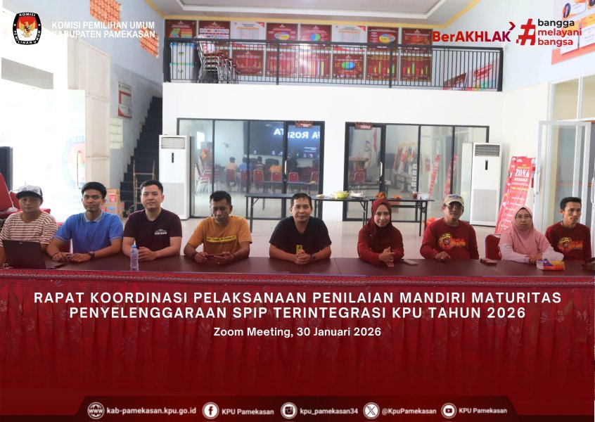 PAMEKASAN – Dalam rangka meningkatkan kualitas tata kelola pemerintahan yang bersih dan akuntabel, Komisi Pemilihan Umum (KPU) Kabupaten Pamekasan mengikuti Rapat Koordinasi (Rakor) Pelaksanaan Penilaian Mandiri Maturitas Penyelenggaraan Sistem Pengendalian Intern Pemerintah (SPIP) Terintegrasi KPU Tahun 2026 secara daring melalui platform Zoom Meeting pada hari ini, Jumat (30/01/2026). Kegiatan ini diikuti secara khidmat oleh seluruh Kepala Sub Bagian (Kasubbag) dan seluruh Staf Teknis dan Hukum di lingkungan Sekretariat KPU Kabupaten Pamekasan. Landasan Regulasi dan Penguatan Internal Pelaksanaan penilaian mandiri ini didasarkan pada dua regulasi utama: Peraturan BPKP Nomor 5 Tahun 2021 tentang Penilaian Maturitas Penyelenggaraan SPIP Terintegrasi pada Kementerian/Lembaga/Pemerintah Daerah. Keputusan KPU Nomor 981 Tahun 2025 tentang Pedoman Teknis Penilaian Maturitas Penyelenggaraan SPIP Terintegrasi di lingkungan KPU hingga tingkat Kabupaten/Kota. Jalannya Acara Acara dibuka secara resmi dengan sambutan dari Divisi Hukum dan Pengawasan KPU RI. Dalam arahannya, ditekankan bahwa SPIP bukan sekadar kewajiban administratif, melainkan fondasi untuk memitigasi risiko di setiap tahapan penyelenggaraan pemilu maupun pengelolaan anggaran. Sesi inti menghadirkan narasumber ahli dari Badan Pengawasan Keuangan dan Pembangunan (BPKP). Dalam pemaparannya, narasumber menjelaskan secara mendalam mengenai: Mekanisme penilaian mandiri (Self Assessment) oleh unit kerja. Parameter penilaian yang mencakup penetapan tujuan, struktur, dan proses. Pentingnya integrasi data antara kinerja dan pengendalian intern. Fokus Penilaian Tahun 2026 Memasuki tahun 2026, KPU dituntut untuk mencapai level maturitas yang lebih tinggi. Pemaparan materi dilanjutkan dengan simulasi teknis bagi para operator SPIP agar mampu mengunggah bukti dukung (eviden) yang akurat sesuai dengan pedoman teknis terbaru. Dengan mengikuti rakor ini, KPU Pamekasan berkomitmen untuk terus meningkatkan skor maturitas SPIP sebagai bentuk transparansi dan tanggung jawab kepada publik dalam menjaga integritas lembaga penyelenggara pemilu. ....
