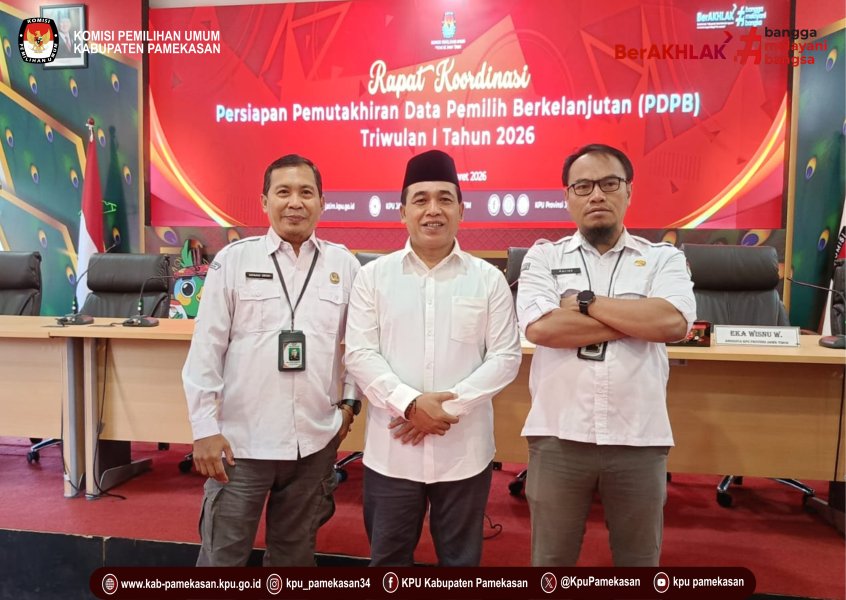 SURABAYA – Komisi Pemilihan Umum (KPU) Kabupaten Pamekasan menghadiri Rapat Koordinasi (Rakor) Persiapan Pemutakhiran Data Pemilih Berkelanjutan (PDPB) Tahun 2026 yang digelar di Aula Kantor KPU Provinsi Jawa Timur, Surabaya. Kegiatan yang berlangsung selama dua hari, mulai tanggal 4 hingga 5 Maret 2026, ini dalam langkah menjaga integritas data pemilih di wilayah Jawa Timur, khususnya Kabupaten Pamekasan. Anggota KPU Pamekasan divisi Perencanaan, Data dan Informasi, Mohammad Halili dan Kasubbag Perencanaan, Data dan Informas, Akhmad Erfan Kusmanto serta Operator Sidalih hadir dalam rakor tersebut.. Rapat koordinasi ini merupakan tindak lanjut dari Peraturan KPU Nomor 1 Tahun 2025 tentang Pemutakhiran Data Pemilih Berkelanjutan. Fokus utama pertemuan adalah merespons data hasil sinkronisasi yang telah diterima untuk periode Triwulan I Tahun 2026. Fokus Utama Pembahasan Dalam agenda tersebut, KPU Pamekasan bersama satuan kerja KPU Kabupaten/Kota se-Jawa Timur lainnya mendalami dua materi inti: Sinkronisasi Data Triwulan I 2026: Membedah materi terkait data turunan dari KPU RI yang akan menjadi landasan PDPB pada tiga bulan pertama di tahun 2026. Persiapan Coktas Semester I: Pembahasan mendalam mengenai Surat Dinas KPU nomor: 117/PL.01-SD/13/2026 tertanggal 30 Januari 2026. Surat ini mengatur mekanisme Pencocokan dan Penelitian Terbatas (Coktas) untuk PDPB Semester I Tahun 2026. Komitmen Data yang Akuntabel Kehadiran KPU Pamekasan dalam rakor ini menegaskan komitmen untuk menyajikan data pemilih yang akurat, mutakhir, dan komprehensif. Proses Coktas ke depan diharapkan dapat menyisir elemen data yang memerlukan verifikasi faktual secara terbatas agar tidak ada hak pilih masyarakat yang terabaikan. "Sinkronisasi data ini bukan sekadar rutinitas administratif, melainkan fondasi bagi kualitas demokrasi kita di masa depan. Kami memastikan setiap pergerakan data terpantau dengan presisi," ujar Mohammad Halili selaku divisi rendatim KPU Pamekasan di sela-sela kegiatan. Melalui koordinasi intensif di tingkat provinsi ini, KPU Pamekasan siap mengimplementasikan hasil sinkronisasi dan menjalankan tahapan Coktas sesuai dengan regulasi yang berlaku. ....