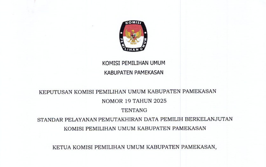 KEPUTUSAN KPU PAMEKASAN NOMOR 19 TAHUN 2025 TENTANG STANDAR PELAYANAN PDPB