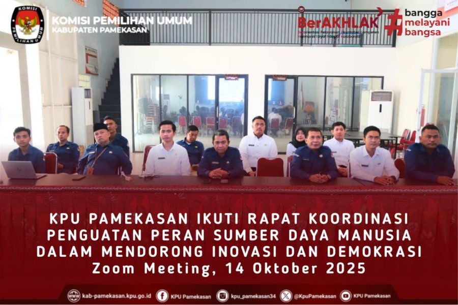 Pamekasan, 14 Oktober 2025 – Komisi Pemilihan Umum (KPU) Kabupaten Pamekasan kembali berpartisipasi dalam Hari Kedua Rapat Koordinasi (Rakor) Penguatan Peran Sumber Daya Manusia (SDM) dalam mendorong Inovasi dan Demokrasi. Kegiatan yang diselenggarakan secara daring ini memasuki sesi diskusi strategis dengan menghadirkan narasumber ahli, salah satunya dari Kementerian Pendayagunaan Aparatur Negara dan Reformasi Birokrasi (KemenPAN-RB).