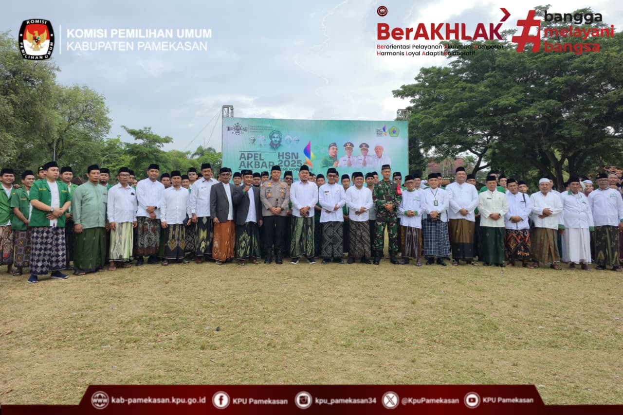 PAMEKASAN - Ketua Komisi Pemilihan Umum (KPU) Kabupaten Pamekasan, Mahdi, turut menghadiri Apel Akbar Hari Santri Nasional (HSN) Tahun 2025 yang dipusatkan di Lapangan Naghara Bhekte Mandhepa Agung Ronggosukowati, Pamekasan, pada Rabu (22/10/2025).