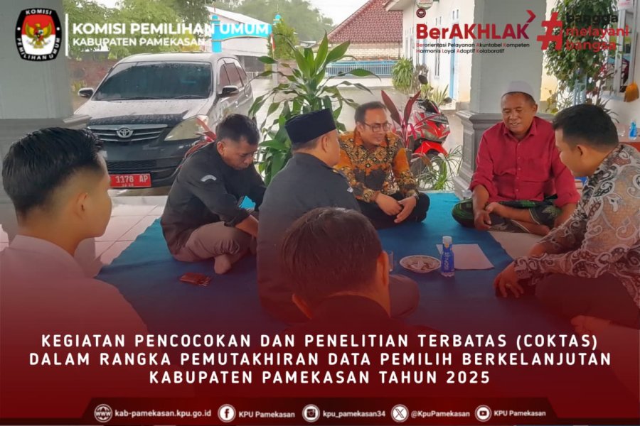 PAMEKASAN – Komisi Pemilihan Umum (KPU) Kabupaten Pamekasan terus berkomitmen menjaga akurasi Daftar Pemilih Berkelanjutan (DPB) melalui pelaksanaan kegiatan Pencocokan dan Penelitian Terbatas (Coktas). Kali ini, kegiatan Coktas difokuskan di wilayah Kecamatan Palengaan pada Rabu, 29 Oktober 2025.