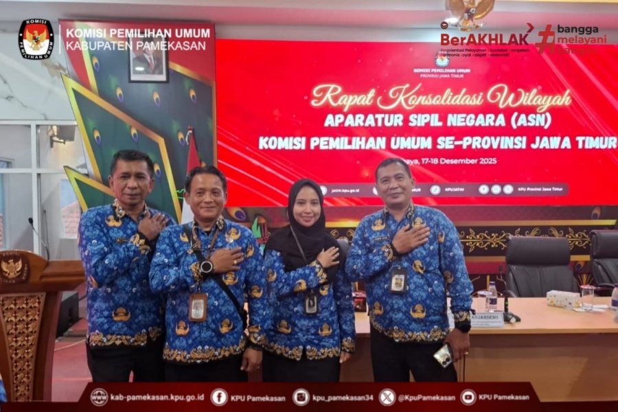 SURABAYA – Guna memperkuat fondasi organisasi dan meningkatkan kualitas pelayanan kepemiluan, seluruh Kepala Sub Bagian (Kasubbag) Komisi Pemilihan Umum (KPU) Kabupaten Pamekasan menghadiri Rapat Konsolidasi Wilayah (Konsulwil) ASN KPU se-Jawa Timur. Kegiatan ini digelar di Aula Kantor KPU Provinsi Jawa Timur, Jalan Raya Tenggilis No. 1-3, Surabaya.