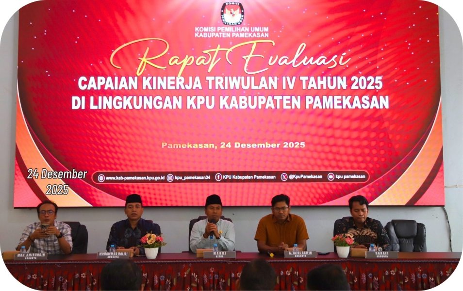 PAMEKASAN – Komisi Pemilihan Umum (KPU) Kabupaten Pamekasan menyelenggarakan Rapat Evaluasi Capaian Kinerja Triwulan IV Tahun 2025 pada Rabu (24/12/2025). Bertempat di aula kantor KPU Pamekasan, rapat ini menjadi momentum krusial untuk meninjau efektivitas program kerja yang telah dijalankan di Triwulan IV tahun 2025.