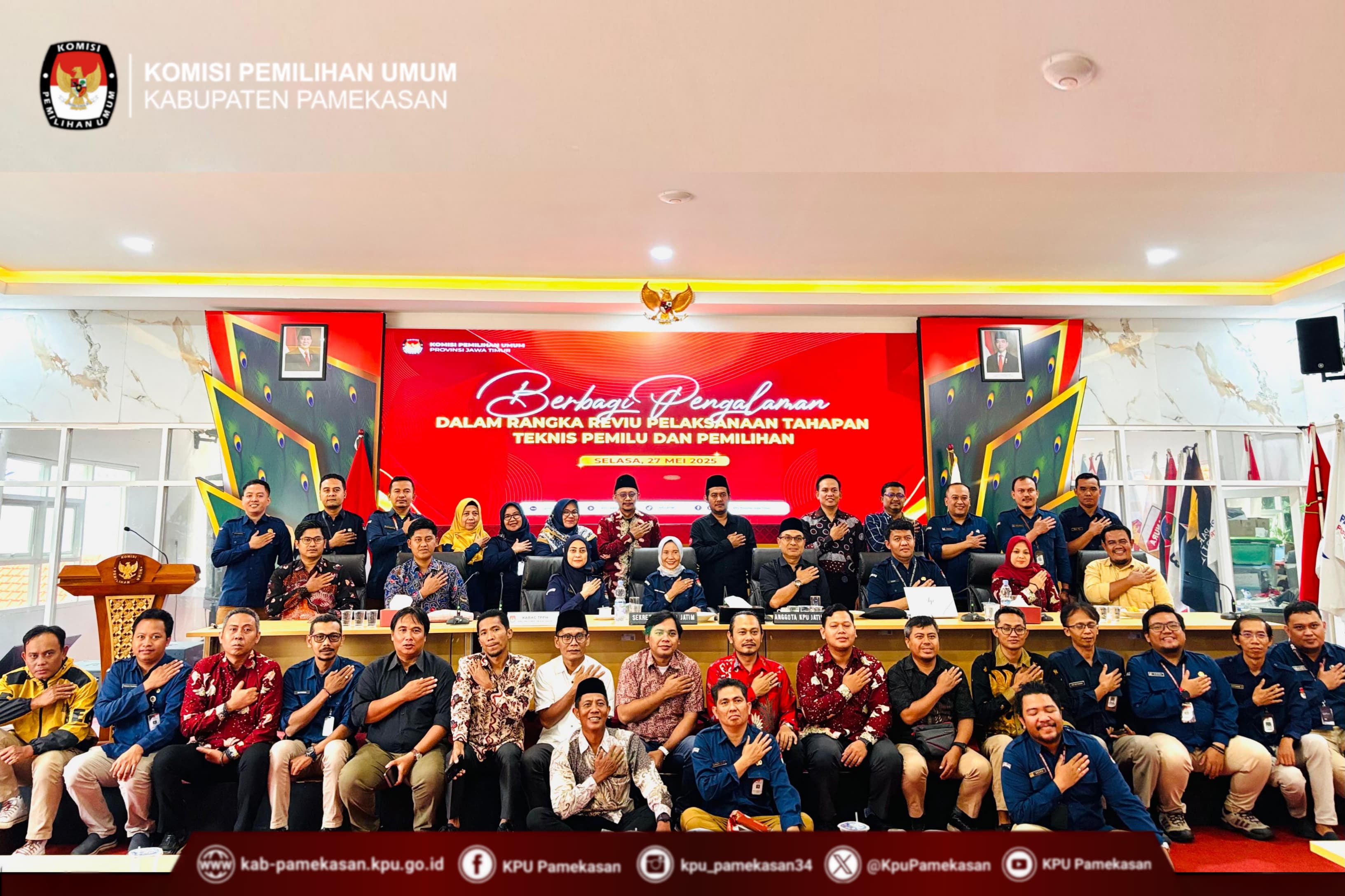 Surabaya, 27 Mei 2025 – Anggota Komisi Pemilihan Umum (KPU) Kabupaten Pamekasan, A. Tajul Arifin, hari ini menghadiri acara "Berbagi Pengalaman dalam Rangka Reviu Pelaksanaan Tahapan Teknis Pemilu dan Pemilihan Tahun 2024" yang diselenggarakan oleh KPU Provinsi Jawa Timur di Surabaya. Acara ini menjadi forum penting bagi para anggota KPU dari berbagai daerah untuk mengevaluasi dan meningkatkan kualitas penyelenggaraan pemilu di masa mendatang.