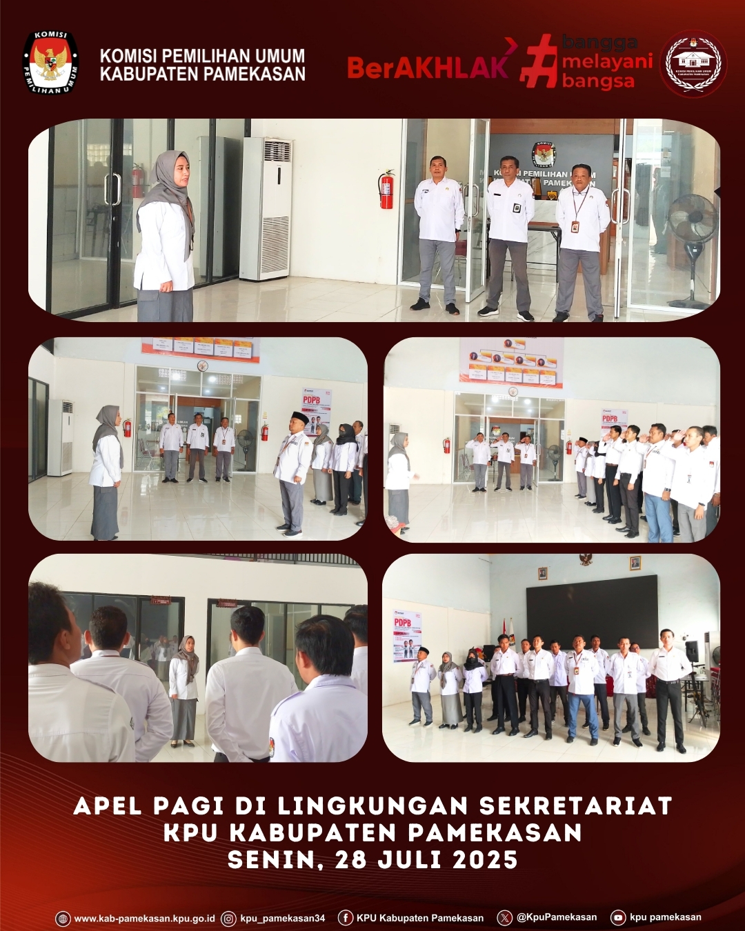 Pamekasan, 28 Juli 2025 – Komisi Pemilihan Umum (KPU) Kabupaten Pamekasan hari ini menggelar apel rutin Senin pagi pukul 07.30 WIB. Apel yang berlangsung di Aula kantor KPU Pamekasan ini dipimpin oleh Dita Melavianty, Kepala Sub Bagian Teknis dan Hukum KPU Pamekasan.