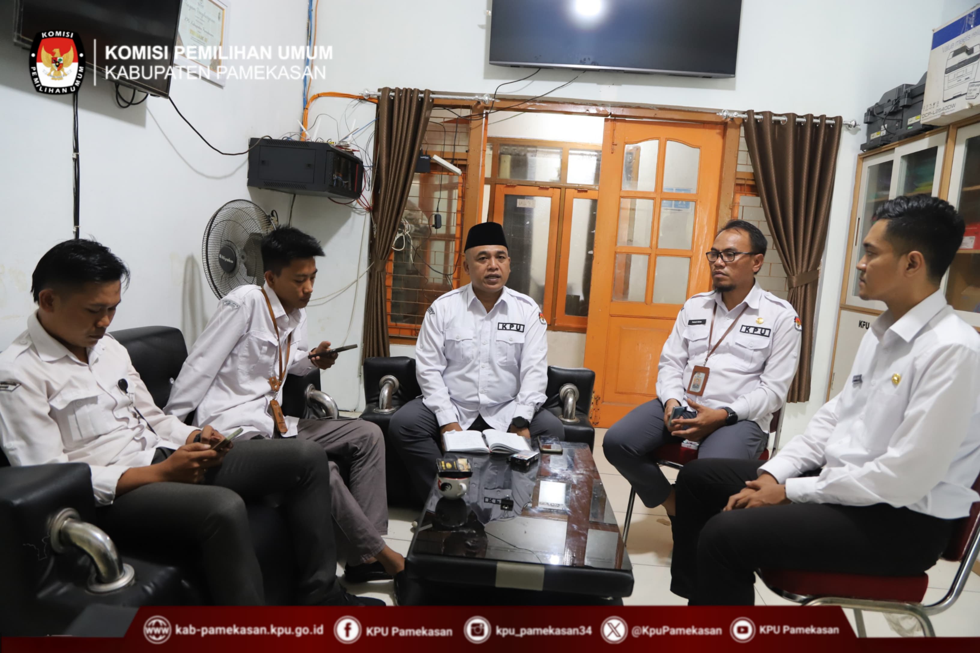 Pamekasan, 16 Juni 2025 – Anggota Komisi Pemilihan Umum (KPU) Kabupaten Pamekasan Divisi Perencanaan, Data, dan Informasi, Mohammad Halili, didampingi Sub Bagian Perencanaan dan Data Informasi (Rendatin), menggelar rapat koordinasi kemarin sore. Rapat ini fokus pada persiapan penyelenggaraan Rapat Koordinasi Pemutakhiran Data Pemilih Berkelanjutan (PDPB) yang direncanakan akan dilaksanakan dalam waktu dekat.