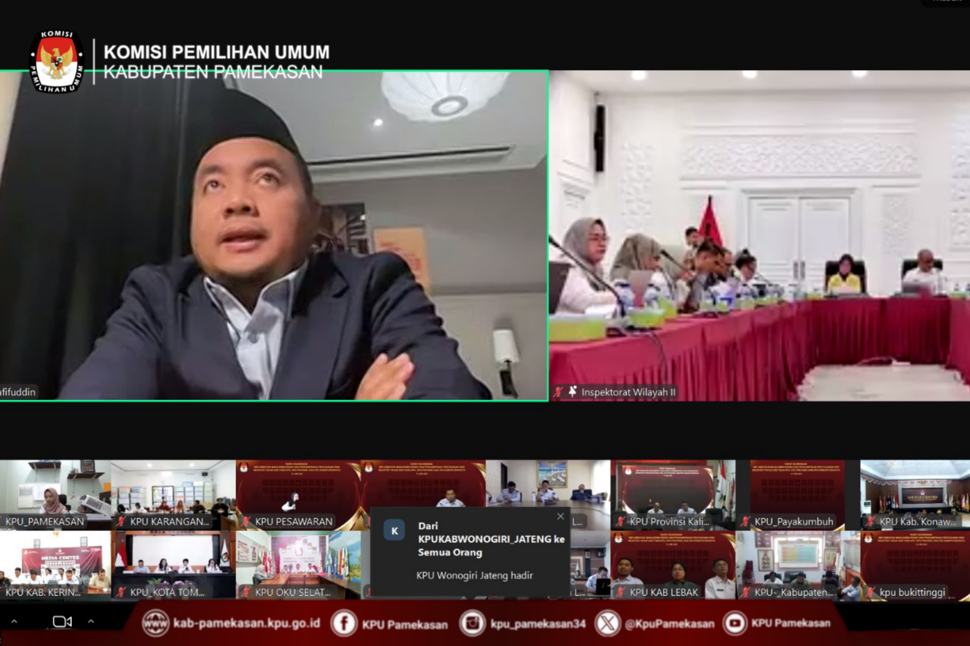 Pamekasan, 12 Juni 2025 – Komisi Pemilihan Umum (KPU) Pamekasan hari ini mengikuti rapat koordinasi virtual yang diselenggarakan langsung oleh KPU Republik Indonesia. Rapat yang dilaksanakan melalui Zoom ini difokuskan pada Implementasi Pengelolaan Risiko dan Pendampingan Penyusunan Daftar Risiko 2025.