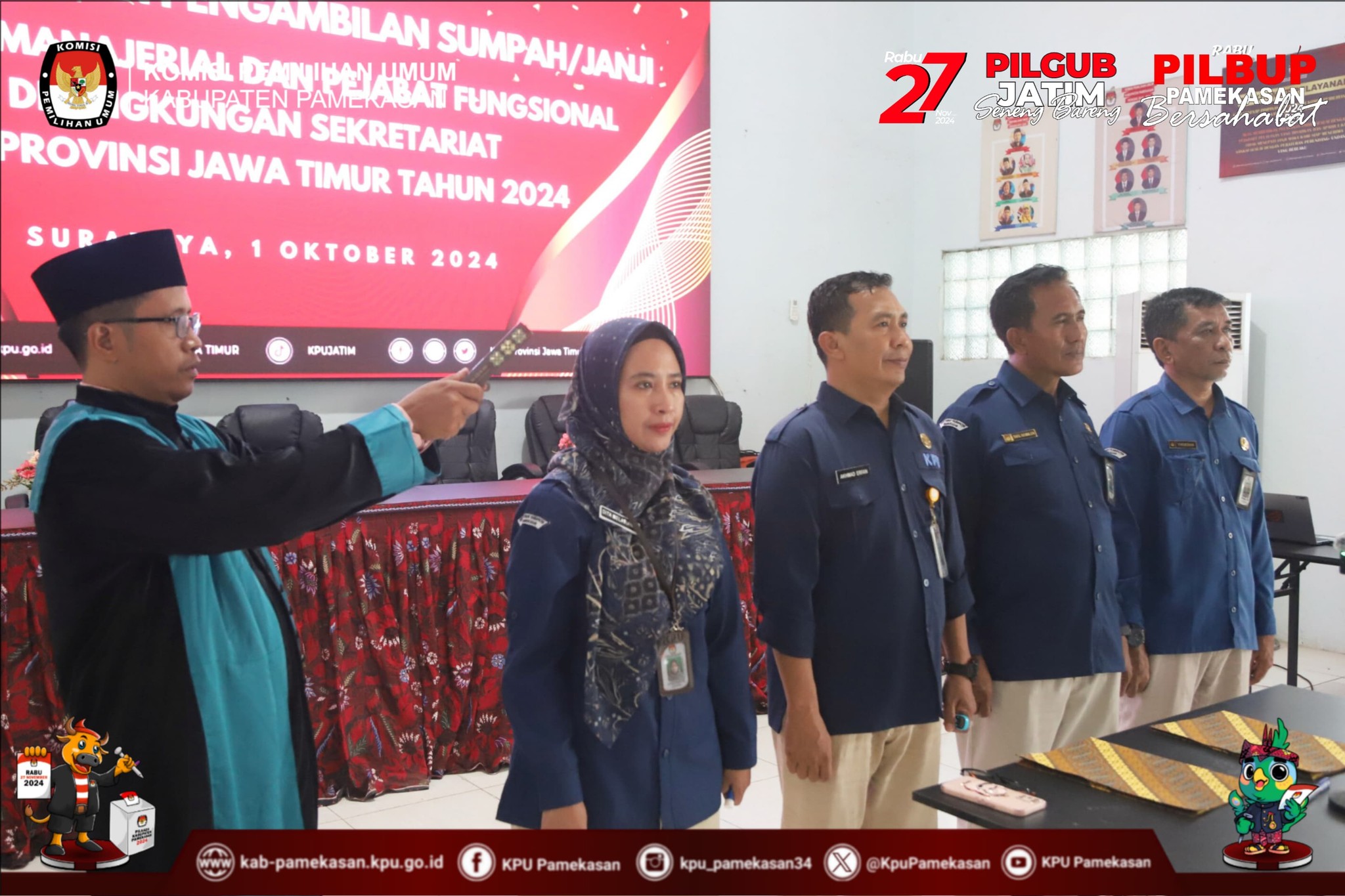 Pelantikan dan Pengambilan Sumpah/Janji Pejabat Manajerial dan Pejabat Fungsional di lingkungan Sekretariat KPU Provinsi Jawa Timur dan Sekretariat KPUKabupaten/Kota Tahun 2024