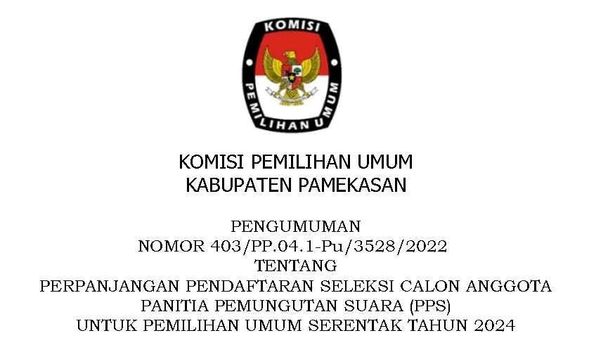 PERPANJANGAN PENDAFTARAN SELEKSI CALON ANGGOTA PANITIA PEMUNGUTAN SUARA (PPS) UNTUK PEMILIHAN UMUM SERENTAK TAHUN 2024