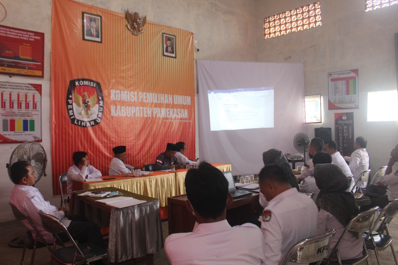 Pamekasan - Senin (1/8/22) Komisi Pemilihan Umum menyelenggarakan kegiatan rapat rutin setiap Minggu pada pukul 08.00 WIB di aula kantor sekretariat KPU kabupaten Pamekasan. Rapat rutin tersebut dihadir oleh ketua KPU Pamekasan, anggota komisioner KPU kabupaten Pamekasan, sekretaris KPU Pamekasan beserta kasubbag dan staf KPU kabupaten Pamekasan. Terdapat beberapa hal yang dibahas dalam rapat, salah satunya perihal helpdes yang pada hari ini sudah mulai bertugas. Disampaikan oleh kasubbag bagian teknis Ibu Dita bahwa yang bertugas sebagai helpdesk, wajib Menerapkan senyum salam dan sapa kepada pengunjung, baik dari parpol ataupun yang lainnya. Kepada yang bertugas di helpdesk juga memiliki kewajiban mencatat setiap pertanyaan di helpdesk, melayani semua konsultasi yang bersangkutan dengan pendaftaran parpol ataupun tentang sipol untuk parpol. Tak lupa juga komisioner mengingatkan kepada sekretaris KPU Bapak Panji untuk bagaimana membuat kegiatan helpdesk serta memantau segala bentuk kegiatan helpdesk setiap harinya. "Saya berharap kedepan semua yang ada di KPU, terutama yang bertugas sebagai helpdesk dapat bekerja secara maksimal mungkin." Papar Amir selaku Komisioner KPU Pamekasan divisi Teknis