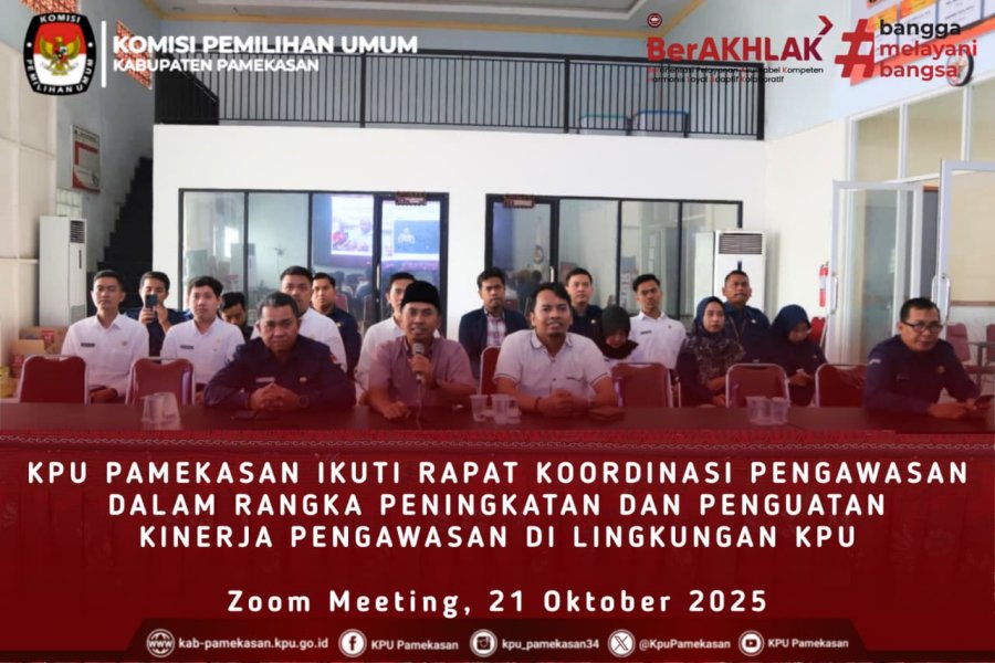 Pamekasan, 21 Oktober 2025 – Seluruh jajaran Komisi Pemilihan Umum (KPU) Kabupaten Pamekasan, yang terdiri dari Ketua, Anggota, Sekretaris, dan seluruh staf Sekretariat, hari ini, Selasa (21/10/2025), mengikuti Rapat Koordinasi (Rakor) Pengawasan di Lingkungan KPU secara daring melalui aplikasi Zoom Meeting. Rakor Nasional yang diselenggarakan oleh Komisi Pemilihan Umum Republik Indonesia ini bertujuan untuk Peningkatan dan Penguatan Kinerja Pengawasan di seluruh jajaran KPU, KPU Provinsi/KIP Aceh, dan KPU/KIP Kabupaten/Kota. Acara dimulai pukul 08.00 WIB hingga selesai. Dalam upaya memperkuat integritas dan akuntabilitas, Rakor ini menghadirkan narasumber dari lembaga-lembaga pengawasan dan penegak hukum terkemuka di Indonesia. Materi yang disampaikan berfokus pada hasil pengawasan dan langkah-langkah pencegahan, dengan urutan sebagai berikut: Materi 1: Overview Penyelenggaraan SPIP Narasumber: Badan Pengawasan Keuangan dan Pembangunan (BPKP) Fokus: Membahas kerangka kerja Sistem Pengendalian Intern Pemerintah (SPIP) untuk memastikan kegiatan KPU berjalan efektif, efisien, dan sesuai dengan peraturan. Materi 2: Sinergisitas KPU dan APH dalam Penanganan dan Penyelesaian Kasus Tipikor serta Peran APIP dan Biro Hukum atas Permasalahan Tipikor Narasumber: Kepolisian dan Kejaksaan Fokus: Memperkuat koordinasi antara KPU dengan Aparat Penegak Hukum (APH) dalam penanganan tindak pidana korupsi (Tipikor), serta peran Aparat Pengawas Internal Pemerintah (APIP) dan Biro Hukum KPU dalam mitigasi risiko hukum. Materi 3: Sosialisasi Whistle Blowing System (WBS) Narasumber: Komisi Pemberantasan Korupsi (KPK) Fokus: Mensosialisasikan pentingnya sistem pelaporan dugaan pelanggaran (WBS) sebagai alat pencegahan dan pendeteksian dini terhadap praktik korupsi. Materi Penutup: Komitmen Penyelesaian Tindak Lanjut Hasil Pemeriksaan Narasumber: Badan Pemeriksa Keuangan (BPK) Fokus: Menekankan komitmen KPU dalam menindaklanjuti seluruh rekomendasi dan temuan hasil pemeriksaan BPK guna mewujudkan tata kelola keuangan yang akuntabel. Ketua KPU Kabupaten Pamekasan, Mahdi menyatakan, partisipasi aktif seluruh jajaran dalam Rakor ini merupakan wujud komitmen KPU Pamekasan dalam menjalankan prinsip integritas, transparansi, dan akuntabilitas. “Penguatan pengawasan adalah kunci untuk menjaga kredibilitas kelembagaan dan seluruh tahapan Pemilu. Dengan adanya sinergisitas yang erat bersama BPK, BPKP, Kejaksaan, Kepolisian, dan KPK, kami berharap kinerja pengawasan di KPU Pamekasan dapat semakin ditingkatkan, sehingga seluruh kegiatan dapat berjalan sesuai aturan dan bebas dari praktik Korupsi, Kolusi, dan Nepotisme,” ujar beliau. KPU Pamekasan berkomitmen untuk menindaklanjuti setiap materi dan arahan yang disampaikan dalam Rakor, menjadikan hasil pengawasan sebagai pijakan utama dalam perbaikan tata kelola internal.