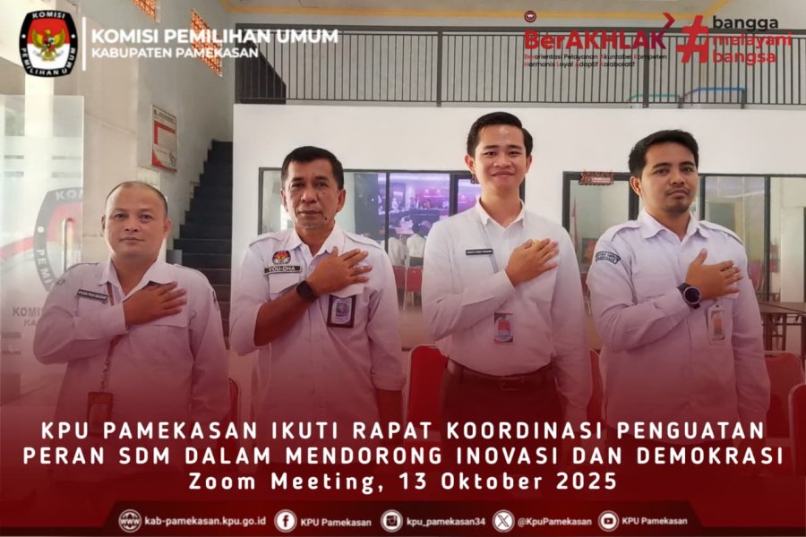 Pamekasan, 14 Oktober 2025 – Komisi Pemilihan Umum (KPU) Kabupaten Pamekasan kembali berpartisipasi dalam Hari Kedua Rapat Koordinasi (Rakor) Penguatan Peran Sumber Daya Manusia (SDM) dalam mendorong Inovasi dan Demokrasi. Kegiatan yang diselenggarakan secara daring ini memasuki sesi diskusi strategis dengan menghadirkan narasumber ahli, salah satunya dari Kementerian Pendayagunaan Aparatur Negara dan Reformasi Birokrasi (KemenPAN-RB). Pada sesi krusial hari kedua ini, Sekretariat KPU Pamekasan menyimak paparan penting dari Analisis Kebijakan Ahli Utama Kementerian PANRB, Dr. Muhammad Imanuddin. Dalam paparannya, Dr. Imanuddin menyoroti urgensi pengembangan kompetensi Aparatur Sipil Negara (ASN) di lingkungan Sekretariat Jenderal KPU sebagai kunci transformasi birokrasi dan peningkatan kualitas pelayanan publik. Secara khusus, beliau memaparkan tentang program BINTANG KPU (Bimbingan Teknis dan Pengembangan Kompetensi ASN KPU). Program ini, dipandang dari sisi Inovasi Pelayanan, ditekankan sebagai terobosan dalam memperkuat kapasitas SDM KPU agar mampu beradaptasi dengan dinamika kepemiluan modern. "Pengembangan kompetensi ASN melalui BINTANG KPU tidak hanya berfokus pada peningkatan teknis kepemiluan, tetapi juga diarahkan untuk menciptakan mindset inovatif dan adaptif dalam memberikan pelayanan publik. Inovasi pelayanan menjadi tolok ukur penting dalam tata kelola birokrasi pemerintahan yang efektif, efisien, dan responsif terhadap kebutuhan masyarakat," jelas Dr. Imanuddin. Lebih lanjut, ia menggarisbawahi bahwa tata kelola birokrasi pemerintahan di era digital menuntut KPU untuk terus berinovasi, khususnya dalam pengelolaan SDM. BINTANG KPU diharapkan menjadi wadah strategis untuk mencetak ASN yang tidak hanya profesional dan berintegritas, tetapi juga memiliki daya saing global serta mampu memanfaatkan teknologi untuk meningkatkan transparansi dan akuntabilitas penyelenggaraan pemilu. Partisipasi KPU Pamekasan dalam Rakor ini menegaskan komitmen dalam memperkuat peran SDM Sekretariat untuk mendorong inovasi. Hasil dari Rakor dua hari ini diharapkan dapat diimplementasikan dalam kebijakan internal KPU Pamekasan guna mewujudkan pelayanan kepemiluan yang semakin berkualitas dan demokratis.