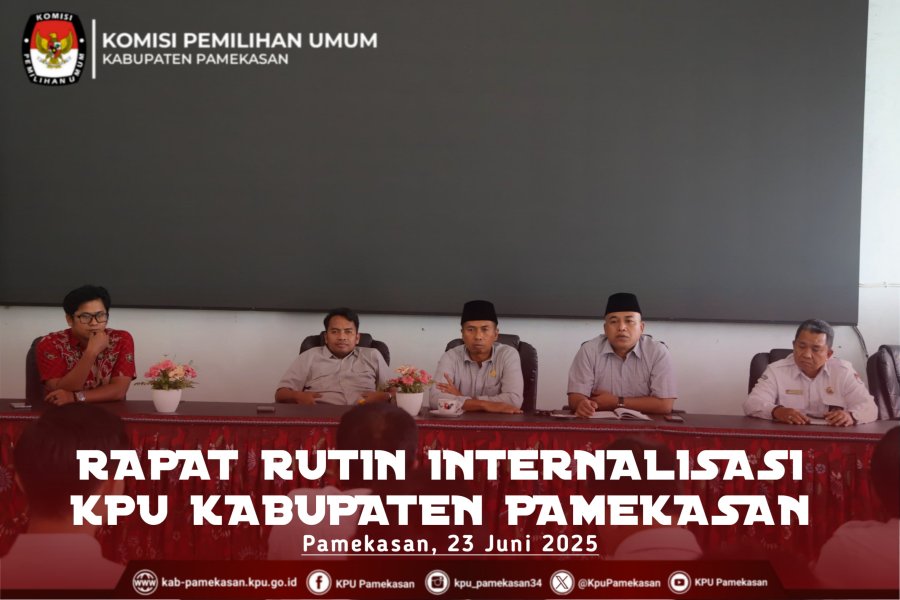 Pamekasan, 23 Juni 2025 – Komisi Pemilihan Umum (KPU) Kabupaten Pamekasan hari ini menggelar rapat internalisasi yang membahas berbagai isu penting, mulai dari pengadaan inventaris, penghijauan lingkungan, hingga persiapan agenda silaturahmi. Rapat ini dihadiri oleh jajaran pimpinan dan staf KPU Pamekasan. Dalam rapat internal yang digelar hari ini, Mahdi menyampaikan, "Kami memprioritaskan pengadaan inventaris kantor yang memadai demi kelancaran operasional. Selain itu, pemenuhan pembelanjaan, khususnya untuk Calon Pegawai Negeri Sipil (CPNS) dan Pegawai Pemerintah dengan Perjanjian Kerja (PPPK) yang baru bergabung, merupakan hal krusial untuk memastikan mereka dapat bekerja secara optimal." Ia menambahkan, "Aspek sarana dan prasarana bagi seluruh jajaran KPU Pamekasan, termasuk CPNS dan PPPK, akan selalu menjadi perhatian kami agar pelayanan kepada masyarakat dapat berjalan prima." Pembahasan dilanjutkan dengan paparan dari Kepala Subbagian (Kasubbag) Perencanaan, Data, dan Informasi (Rendatin), Akhmad Erfan Kusmanto. Erfan menjelaskan hasil rapatnya dengan KPU RI, termasuk pemenuhan pembelanjaan untuk CPNS dan Pegawai Pemerintah dengan Perjanjian Kerja (PPPK), serta pemenuhan sarana dan prasarana bagi mereka. Sementara itu, Bendahara KPU Pamekasan, Hari Mulyono, memaparkan rencana anggaran yang akan datang. Kemudian, Kasubbag Partisipasi Masyarakat dan Sumber Daya Manusia (Parmas dan SDM), Yuda, memberikan masukan terkait perizinan dan agenda yang perlu disampaikan kepada Kasubbag Keuangan, Umum, dan Logistik (KUL) yang sedang sakit di Surabaya. Menutup rapat, Ketua KPU Pamekasan, Mahdi, memberikan arahan mengenai agenda penting mendatang. "Pada hari Rabu, 25 Juni 2025, pimpinan KPU Pamekasan akan bersilaturahmi ke Komando Distrik Militer (Kodim) 0826 Pamekasan dan Lembaga Pemasyarakatan (Lapas) Pamekasan," pungkas Mahdi.