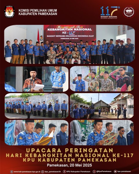 PAMEKASAN, 20 Mei 2025 – Komisi Pemilihan Umum (KPU) Kabupaten Pamekasan menggelar upacara peringatan Hari Kebangkitan Nasional (HARKITNAS) yang ke-117 tahun 2025 pada hari ini, Selasa (20/5/2025). Upacara khidmat ini dimulai pada Pukul 08.00 WIB dilaksanakan di halaman Kantor KPU Pamekasan dan diikuti oleh seluruh jajaran komisioner, sekretaris, kepala sub bagian, serta staf sekretariat KPU Pamekasan. Bertindak sebagai Pembina Upacara adalah Ketua KPU Pamekasan, Mahdi. Beliau menyampaikan bahwa peringatan Harkitnas tahun ini mengusung tema “Bangkit Bersama Wujudkan Indonesia Kuat”. Tema ini dipilih dengan harapan dapat menanamkan nilai-nilai semangat dan kekuatan untuk bersama-sama bangkit menuju masa depan Indonesia yang lebih kuat dan maju. "Hari ini kita memperingati momentum penting dalam sejarah bangsa Indonesia, yaitu Hari Kebangkitan Nasional. Semangat persatuan dan kesadaran akan pentingnya kemerdekaan yang dipelopori oleh para pendahulu kita harus terus kita warisi dan implementasikan dalam setiap langkah kita," ujar Mahdi. Lebih lanjut, Mahdi menekankan bahwa tema "Bangkit Bersama Wujudkan Indonesia Kuat" sangat relevan dengan tugas dan tanggung jawab KPU dalam menyelenggarakan pemilu yang jujur, adil, dan berintegritas. Ia mengajak seluruh jajaran KPU Pamekasan untuk terus meningkatkan kinerja dan profesionalisme dalam menjalankan setiap tahapan pemilu demi mewujudkan Indonesia yang kuat melalui proses demokrasi yang sehat. Upacara peringatan Harkitnas di lingkungan KPU Pamekasan berlangsung dengan tertib dan khidmat. Para peserta upacara tampak mengenakan pakaian batik bagi Komisioner, pakaian KOPRI bagi ASN dan PDH bagi Non ASN. Upacara diakhiri dengan pembacaan doa untuk kemajuan bangsa dan negara.