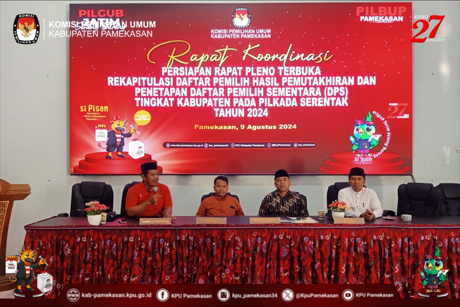 kab-pamekasan.kpu.go.id - Komisi Pemilihan Umum (KPU) Kabupaten Pamekasan menyelenggarakan Sosialisasi PKPU Nomor 8 Tahun 2024 Menuju Pemilihan Kepala Daerah Serentak pada 27 November 2024 Ikut serta hadir dalam sosialisasi Perwakilan Parpol dan Narasumber dari Bawaslu, Sukma Umbara serta dari Bapperida, Sigit Priyono bertempat di Aula Barat KPU Kabupaten Pamekasan, Kamis (08/08/2024)