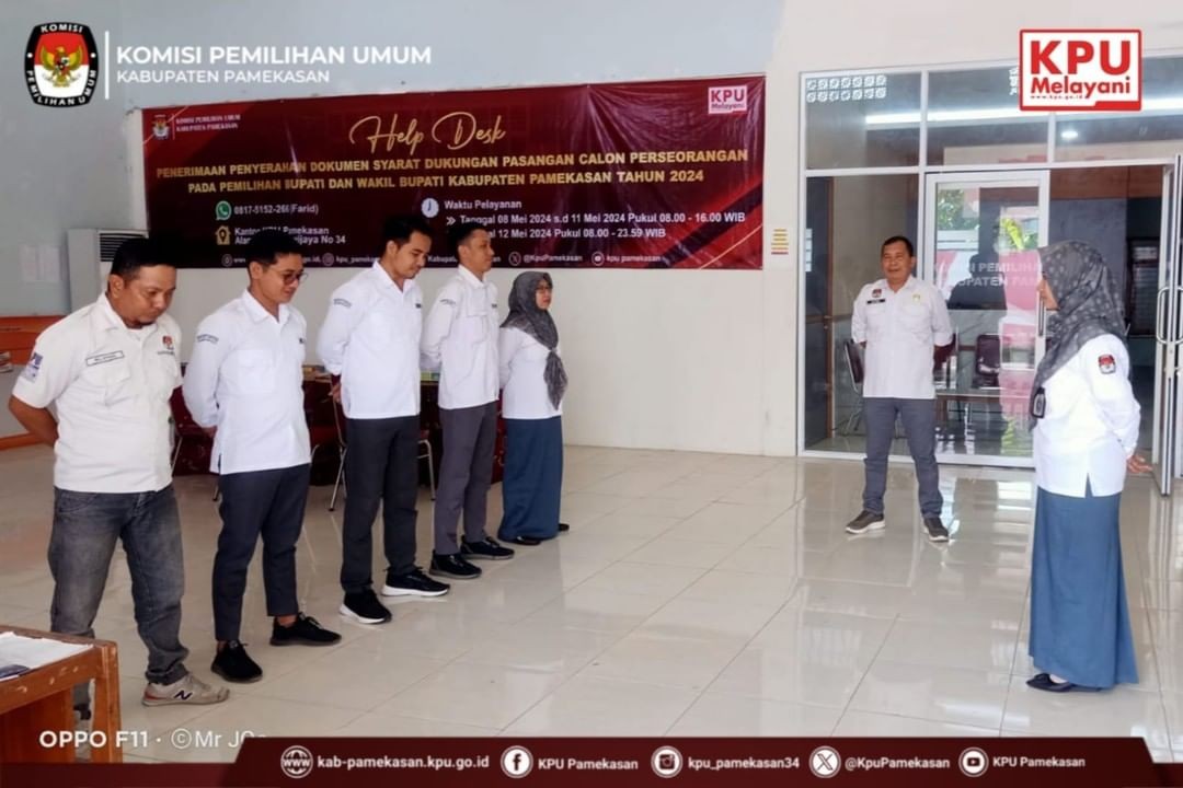 KPU Pamekasan dihadiri Ketua Mohammad Halili, Anggota Moh. Amiruddin, Anggota Moh Manshur, Anggota Fathor Rachman, dan Sekretaris Panji Kuncoro.