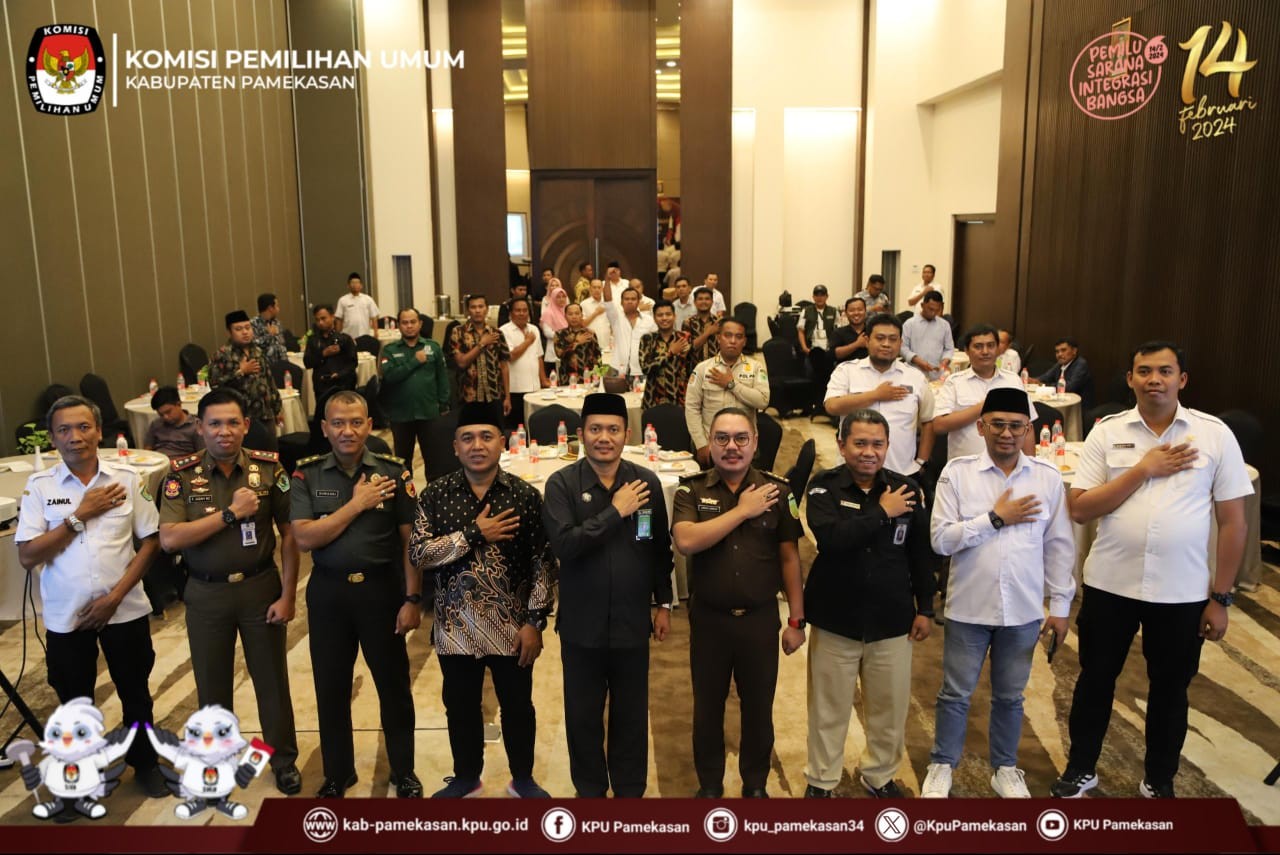 Pamekasan, kab-pamekasan.kpu.go.id – Ketua KPU Kabupaten Pamekasan Menghadiri kegiatan Seminar dan Deklarasi Pemilu Damai yang dilaksanakan oleh Paguyuban Insan Jurnalis Pamekasan Dalam Rangka memperingati Hari Pers Nasional (HPN) tahun 2024, Paguyuban Insan Jurnalis Pamekasan menggelar Seminar Pemilu Damai dengan tema “peran masyarakat perangi berita hoax menuju pemilu damai dan aman”. Seminar pemilu damai ini diselenggarakan di Mapolres pamekasan yang bertempat di aula Bhayangkara dan dihadiri oleh lintas forkopimda, OPD, Perkasa TNI-Polri, lKASA, Kopri, dan perwakilan Organisasi Jurnalis se Kabupaten Pamekasan. Ketua PIJP Sujak Lukman mengatakan, adanya kegiatan seminar ini dilaksanakan pada momen Hari Pers Nasional (HPN) yang ke-24 pada tahun 2024. Tentunya kami PIJP bangga karena terus hadir untuk memberikan support penuh terhadap masyarakat dalam peran sertanya menghadapi pemilu damai dan aman,” ungkapnya. Untuk itu dirinya berharap dengan adanya seminar ini dapat bermanfaat bagi para peserta yang hadir utamanya dalam pemahaman dasar terkait kode etik profesi jurnalis. “Semoga dengan adanya seminar pemilu damai dan aman ini dapat bermanfaat dan langsung tersampaikan kepada masyarakat. Sehingga masyarakat tidak lagi percaya terhadap berita hoax dan dapat membedakan mana Berita Hoax dan mana berita yang berimbang alias tidak hoax,” terangnya.