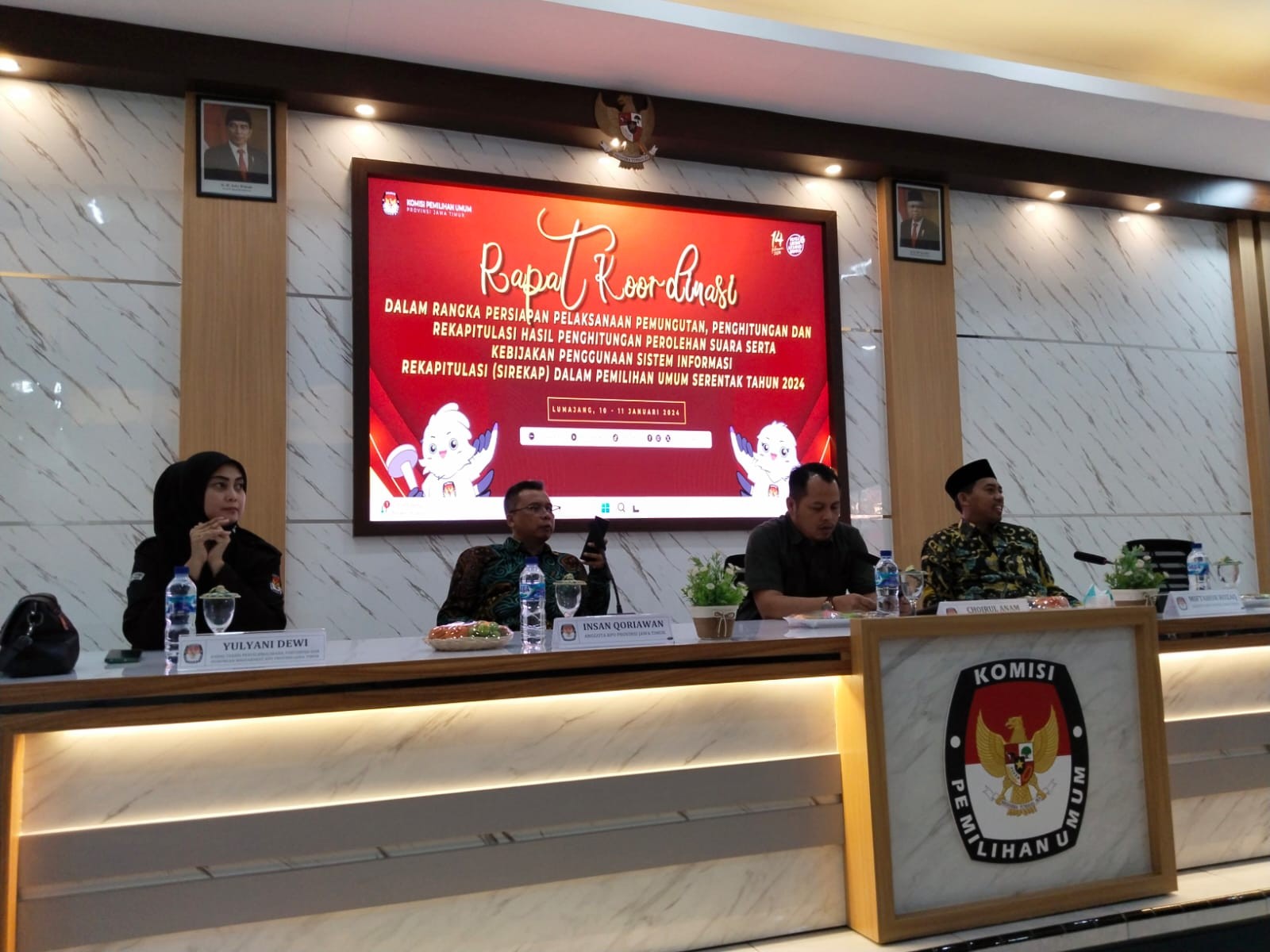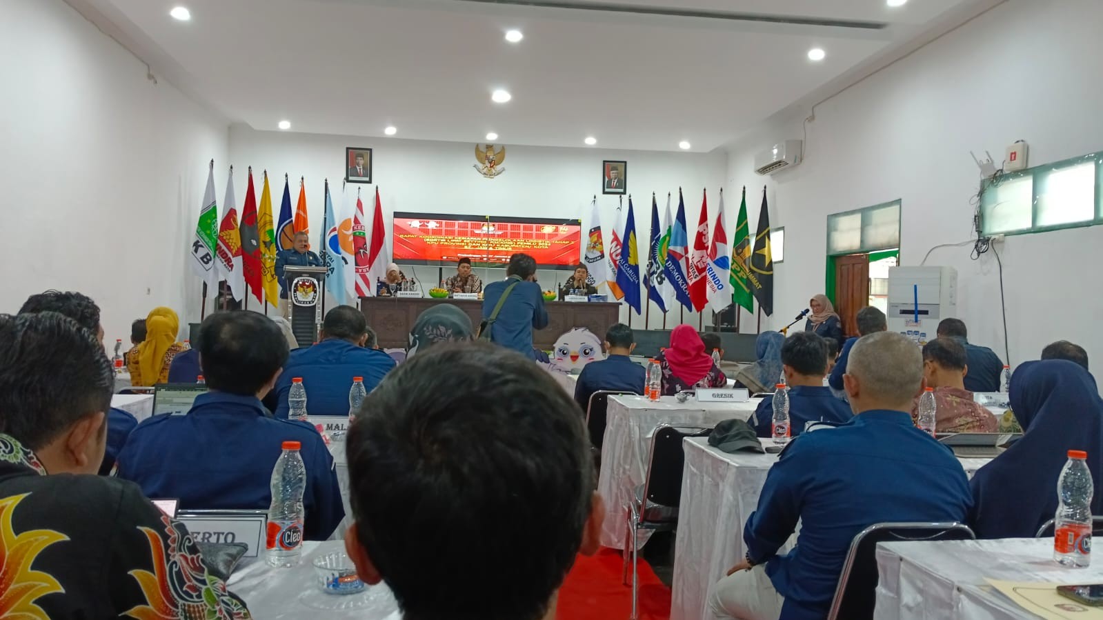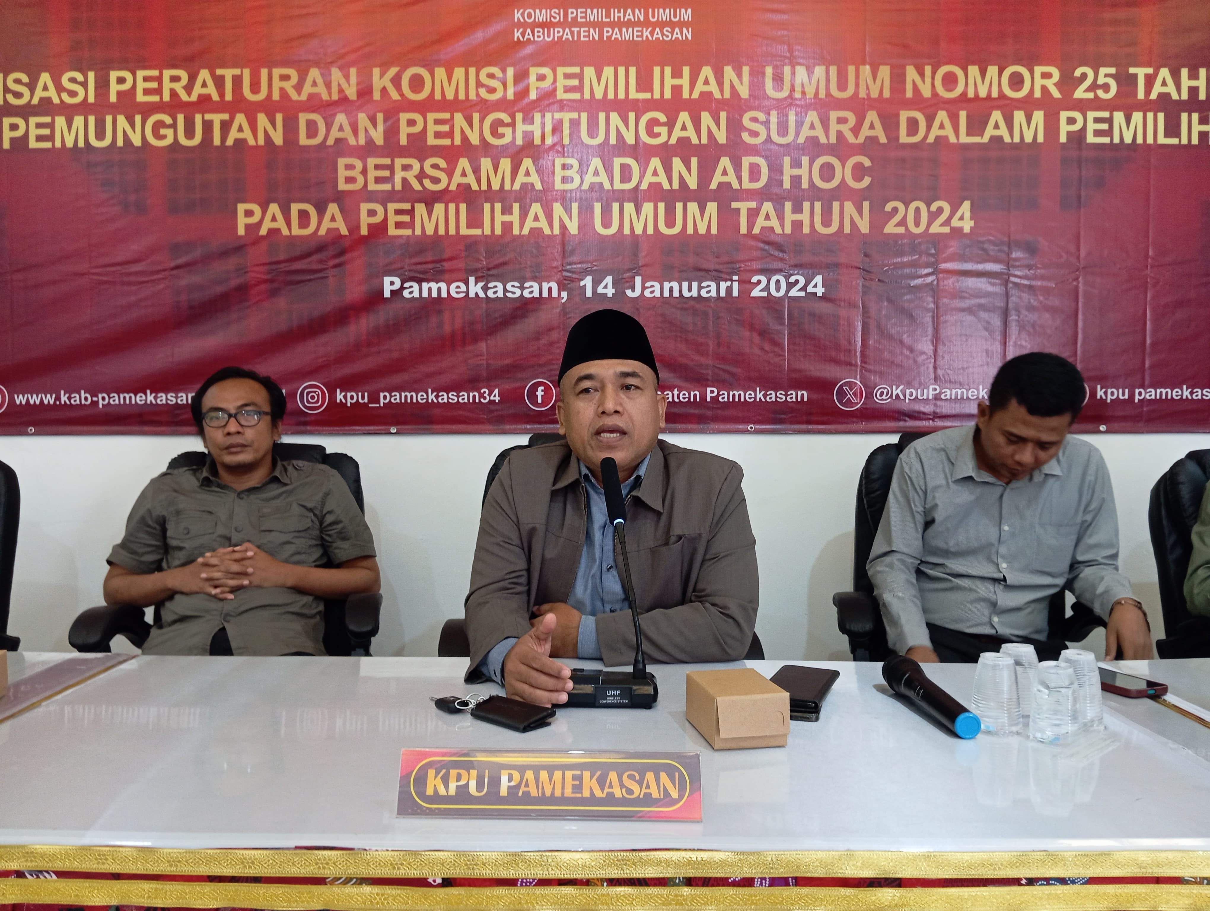 Pamekasan, kab-pamekasan.kpu.go.id - KPU Kabupaten Pamekasan melaksanakan kegiatan Sosialisasi PKPU Nomor 25 Tahun 2023 pada hari Minggu (14/01/2023) bertempat di Aula Barat Kantor KPU Kabupaten Pamekasan dengan dihadiri oleh Bawaslu Kabupaten Pamekasan dan Badan Adhoc se- Kabupaten Pamekasan. Kegiatan diawali dengan sambutan dari Ketua KPU Kabupaten Pamekasan Muhammad Halili, Menyampaikan bahwa Sosialisasi yang dilakukan dapat menyamakan persepsi terkait pemungutan dan penghitungan suara pada 14 Februari 2024. "kita berharap seluruh proses pemungutan dan penghitungan suara dapat berjalan dengan baik di tiap tingkatan," ujar Halili. Halili menambahkan agar informasi yang disampaikan pada Sosialisasi hari ini dapat sampai ke Saksi Partai Politik yang akan terjun langsung ke TPS di hari pemungutan. "sehingga nantinya apabila ada hal yang perlu diutarakan dapat disampaikan di tempat dan orang yang tepat sehingga tidak menimbulkan kegaduhan," tutup Halili. Kegiatan kemudian dilanjutkan dengan materi seputar PKPU 25 yang disampaikan oleh Anggota KPU Kabupaten Pamekasan divisi Teknis Penyelenggaraan Moh Amiruddin.