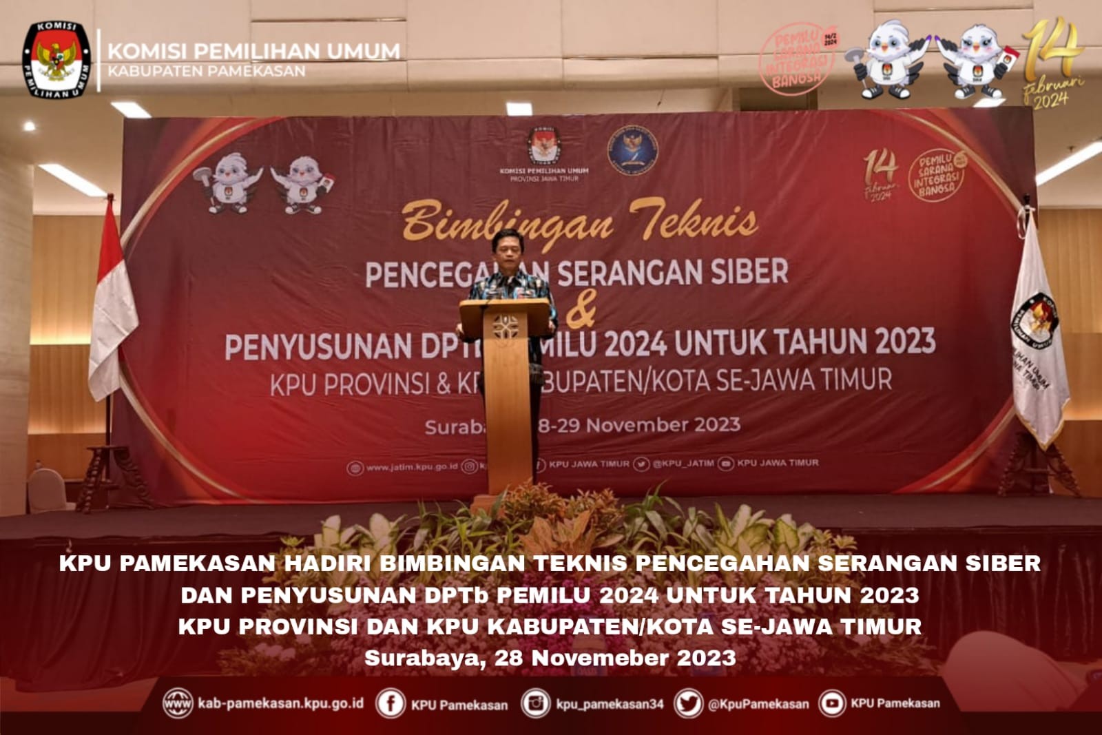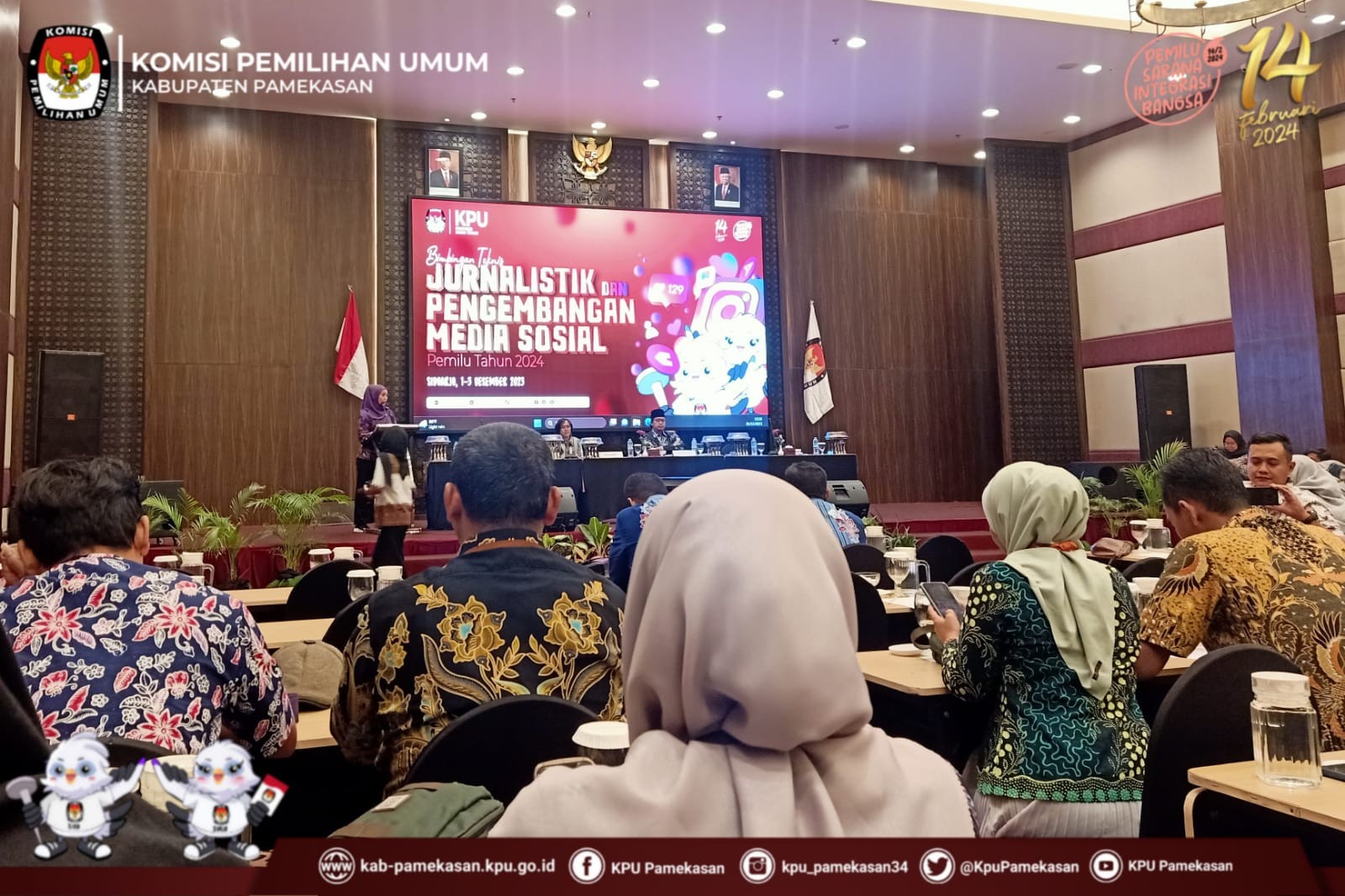 Pamekasan, kab-pamekasan.kpu.go.id - KPU Kabupaten Pamekasan ikuti Bimbingan Teknis (Bimtek) Jurnalistik dan Pengembangan Media Sosial Pada Pemilu Tahun 2024 yang diselenggarakan oleh KPU Provinsi Jawa Timur selama tiga hari (1-3 Desember 2023) di Hotel Favehotels Sidoarjo, (1/12/2023). Hadir mewakil KPU Pamekasan Fathor Rachman Ketua Divisi Sosdiklih Parmas dan SDM, Dita Melavianty Kasubbag Teknis Penyelenggaraan, Partisipasi & Hubungan Masyarakat, dan Farid S Operator Medsos. dan 37 KPU Kabupaten/Kota se- Jawa Timur. Rapat dibuka oleh Rochani selaku Divisi SDM dan Litbang KPU Provinsi Jawa Timur, Mewakili Ketua KPU Provinsi Jawa Timur menyampaiakan Kegiatan ini dilaksanakan untuk memberikan pelatihan kepada jajaran KPU Kabupaten/Kota untuk dapat membuat karya jurnalistik yang mampu menarik minat pembaca. “Berita dilepas tidak hanya untuk bahan informasi, namun ada misi lain yaitu untuk meningkatkan partisipasi masyarakat,” tutur Rochani. Rochani mengungkapkan bahwa dalam pembuatan masih banyak KPU Kabupaten/Kota yang belum sesuai standart dalam pembuatan karya jurnalistik, lebih parah lagi beberapa KPU Kabupaten/Kota tidak membuat karya jurnalistik sama sekali. “Audit pemberitaan penting untuk dilakukan agar pemberitaan yang dimuat memberikan informasi sesua data dan fakta,” imbuhnya. Acara dilanjutkan dengan pembekalan dari Gogot Cahyo Baskoro Ketua Divisi Sosialisasi Pendidikan Pemilih dalam paparanya menyampaikan bahwa bimtek ini agar medsos yang dikelola KPU Kabupaten Kota lebih menjual, menarik, dan tidak bosan ketika netizen membacanya. "Kami akan mengecek semua peserta bimtek, apakah semua sudah punya akun medsos apa tidak, dan kami berharap semua peserta memfollow akun medsos KPU Jatim," kata Gogot. “Sebagai penyelenggara aspek komunikasi ke masyarakat sangat krusial, sehingga diadakannya bimtek ini diharapkan dapat mengingkatkan hal tersebut,” Tambahnya