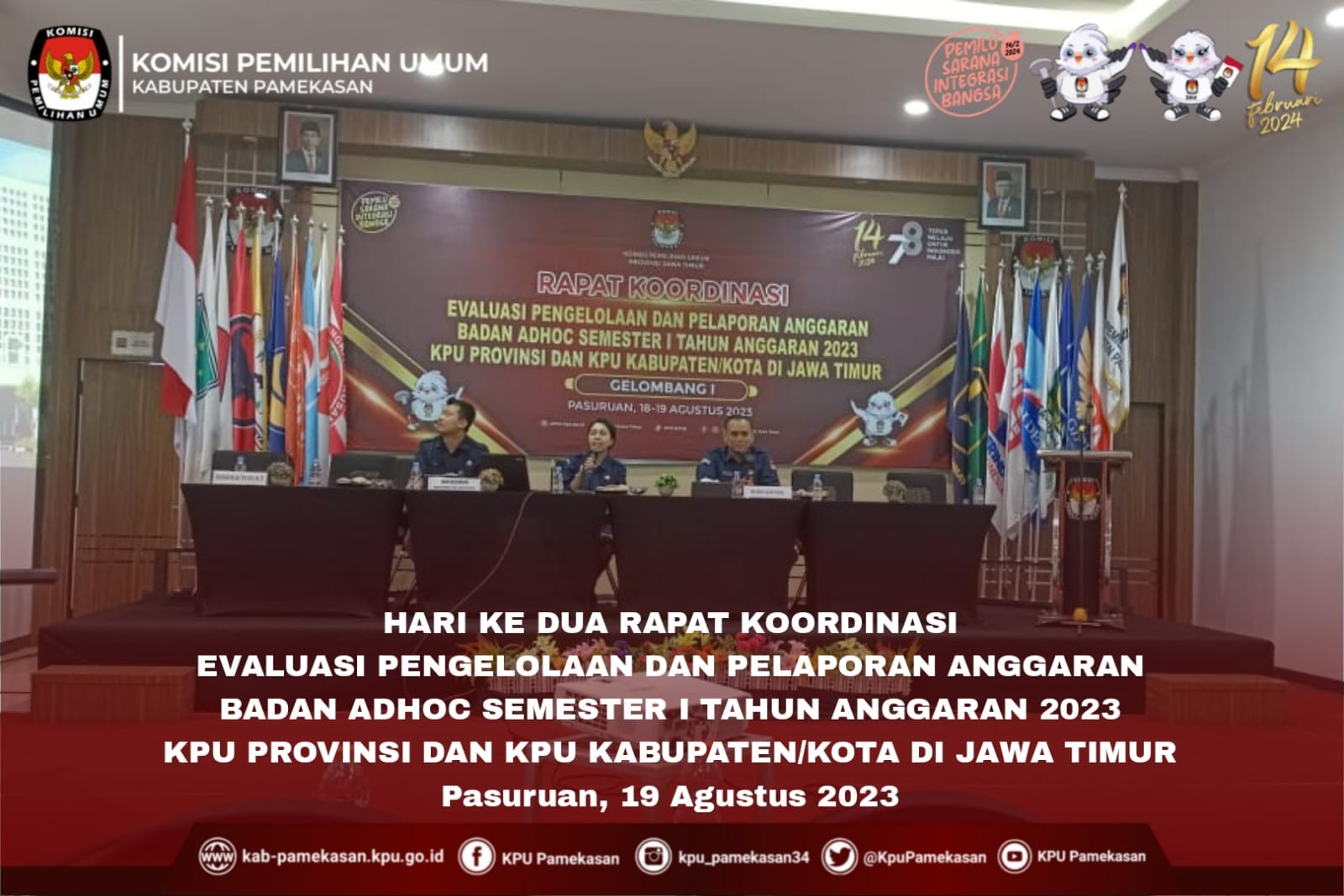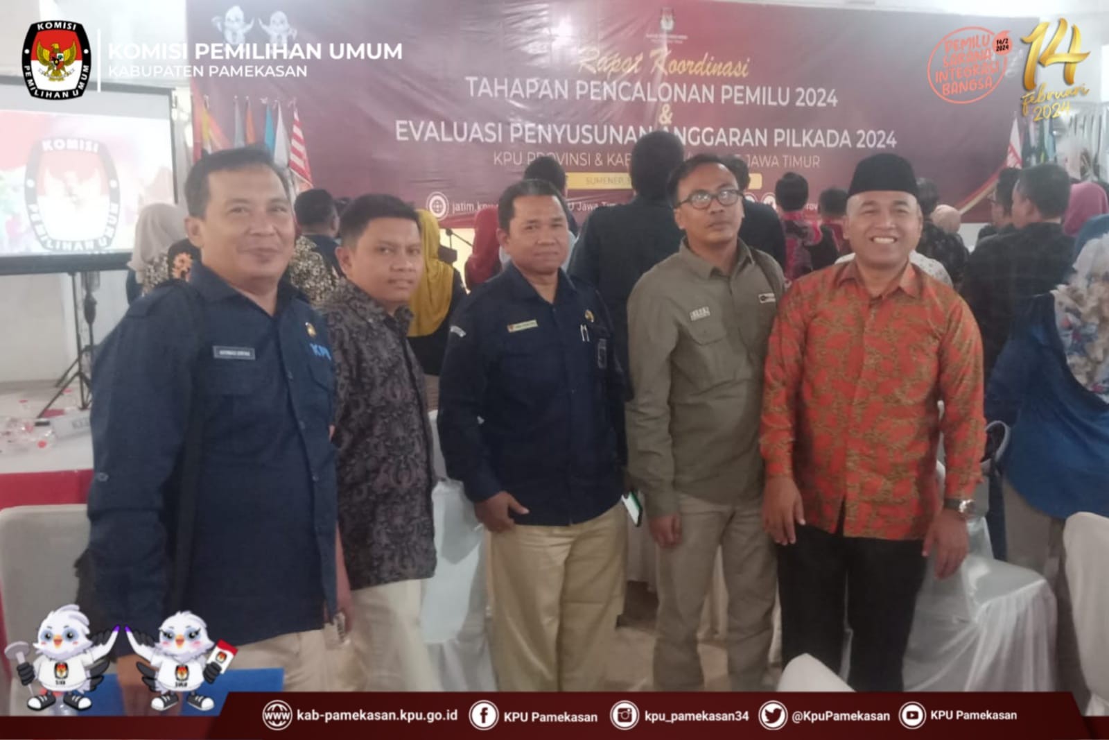 Sumenep, kab-pamekasan.kpu.go.id - Komisi Pemilihan Umum Kabupaten (KPU) Pamekasan mengikuti Rapat Koordinasi (Rakor) Bersama Tahapan Pencalonan Pemilu 2024 dan Evaluasi Penyusunan Anggaran Pilkada 2024 KPU Kabupaten/Kota se-Jawa Timur. Rakor yang diselenggarakan oleh KPU Provinsi Jawa Timur dan dilaksanakan di Kantor KPU Kabupaten Sumenep dengan mengundang Ketua, Divisi Teknis Penyelenggaraan, Divisi Perencanaan, Data, dan Informasi, Sekretaris, serta Kepala Sub Bagian Perencanaan, Data, dan Informasi, Ketua Mohammad Halili, Divisi Teknis Penyelenggaraan Moh. Amiruddin, Divisi Perencanaan, Data, dan Informasi Ibnun Hasan mahfud, serta Kepala Sub Bagian Perencanaan, Data, dan Informasi Akhmad Erfan Kusmanto Hadir mewakili KPU Kabupaten Pamekasan. Acara dilaksanakan selama 3 (tiga) hari mulai hari Kamis (31/8/2023) sampai dengan hari Sabtu (2/9/2023) di Kabupaten Sumenep. Ketua KPU Provinsi Jawa Timur, Choirul Anam dalam sambutannya mengingatkan tahapan kampanye setelah usai tahapan pencalonan pada Pemilu Tahun 2024 yang berlangsung selama 75 hari. Karena tahapan kampanye lebih singkat sebagai sebab tahapan pencalonan jadi lebih panjang. Secara beriringan, KPU juga akan memasuki tahapan Pilkada Serentak Tahun 2024 yang pada saat ini KPU kabupaten/kota sebagian telah bersepakat dengan Pemerintah Daerah dalam menetapkan anggaran Pilkadanya yang dituangkan dalam Berita Acara untuk kemudian dilanjutkan penandatanganan Nota Persetujuan Hibah Daerah (NPHD). "Masih ada beberapa kabupaten/kota yang belum menuangkan kesepakatan dalam Berita Acara dan beberapa juga masih menyusun kembali Rencana Kebutuhan Anggaran (RKB) Pilkadanya," ujar Anam. Rochani, Anggota KPU Provinsi Jawa Timur Divisi SDM dan Litbang, menyampaikan arahannya disesi kedua kegiatan rakor yang berlangsung di kantor KPU Kabupaten Sumenep dengan mengingatkan terkait kedudukan badan adhoc pada Pilkada Serentak Tahun 2024. Terdapat 2 (dua) opsi pembentukan Badan Adhoc Pilkada 2024 yang perlu pencermatan bersama yaitu melalui seleksi terbuka atau pengukuhan kembali. "Hal ini perlu dirancang secara cermat karena ada konsekuensi terhadap anggaran Pilkada 2024 terkait efisiensi dan efektivitas," tegas Rochani. Selanjutnya, Nurul Amalia, Divisi Data dan Informasi KPU Provinsi Jawa Timur, menginstruksikan agar Divisi Rendatin KPU Kabupaten/Kota mulai memetakan data pemilih di Tempat Pemungutan Suara (TPS) Lokasi Khusus dengan maksimal 300 pemilih dalam tahapan penyusunan Daftar Pemilih Tambahan (DPTb). Nantinya juga menunjang kegiatan pemutakhiran data pemilih pada Pilkada 2024. Insan Qoriawan, Divisi Teknis Penyelenggaraan juga mengingatkan perlunya koordinasi berkesinambungan antardivisi. Di beberapa daerah di Jawa Timur masih ada laporan berbagai pihak terhadap tanggapan Daftar Calon Sementara (DCS) yang bermasalah. "Jika diperlukan lakukan review kembali DCS yang dianggap bermasalah atau yang menjadi bahan masukan dari publik," tegas Insan. Tak ketinggalan Sekretaris KPU Provinsi Jawa Timur, Nanik Karsini mengingatkan pula pada seluruh Sekretaris KPU Kabupaten/Kota se-Jawa Timur untuk memastikan tidak ada keterlambatan atau permasalahan dalam pencairan anggaran Badan Adhoc. Jika ada kendala, agar segera dikonsultasikan pada KPU Provinsi Jawa Timur.