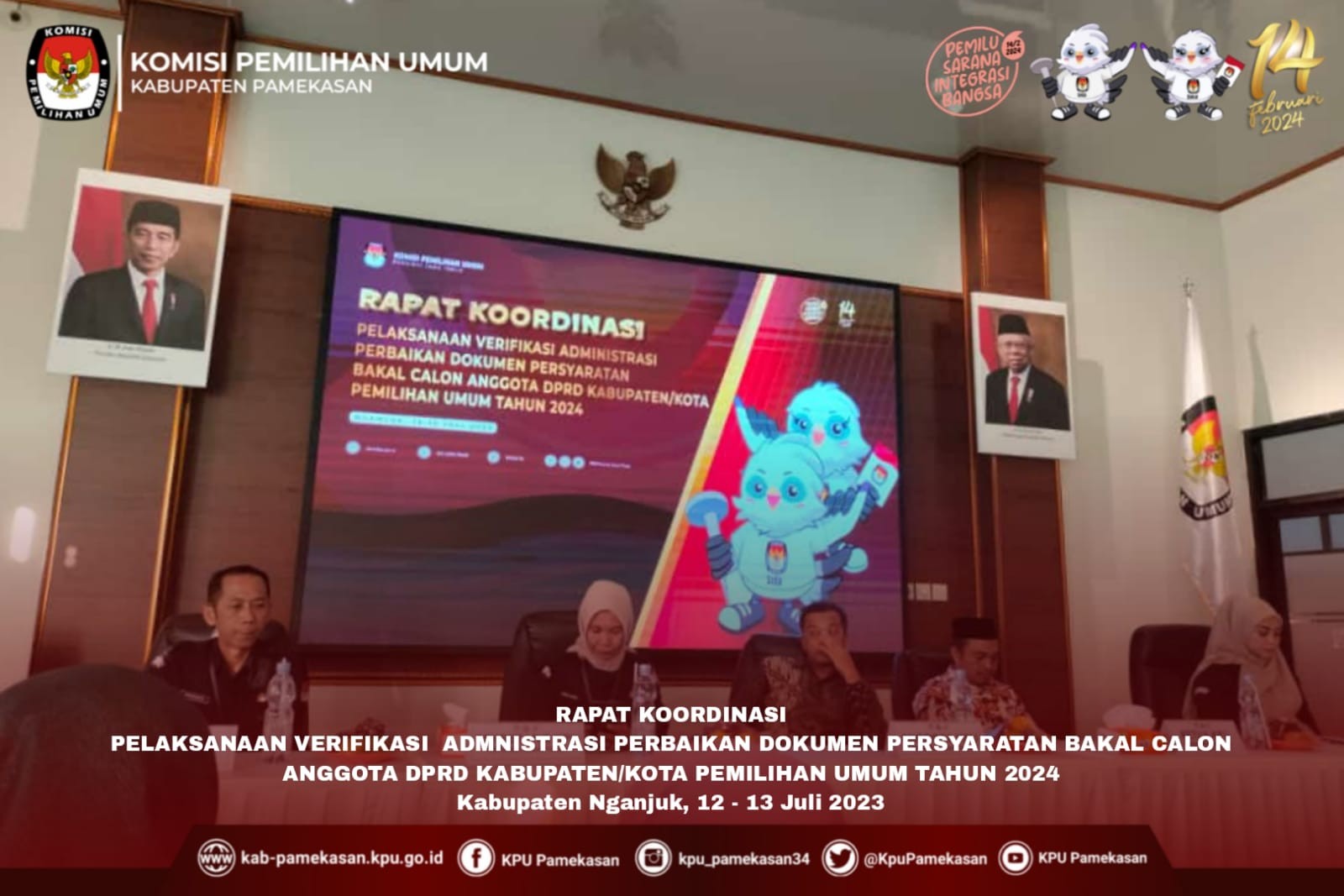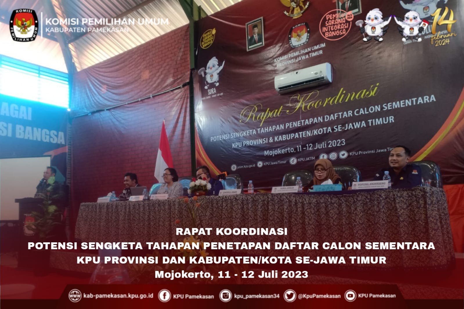 Mojokerto - kab-pamekasan.kpu.go.id - Komisi Pemilihan Umum Kabupaten Pamekasan menghadiri Rapat Koordinasi Potensi Sengketa Tahapan Penetapan Daftar Calon Sementara KPU Kabupaten/Kota se-Jatim, oleh KPU Provinsi Jawa Timur. Selasa, (11 Juli 2023). Acara dilaksanakan selama 2 (dua) hari tanggal 11 sampai dengan 12 Juli 2023 yang di ikuti oleh Divisi Hukum dan Pengawasan serta kepala Sub Bagian Hukum dan SDM Se-Jawa Timur. Anggota KPU Kabupaten Pamekasan, Moh. Manshur Divisi Hukum dan Pengawasan dan Kasubbag Hukum dan SDM, Yuda Hadir mewakili KPU Kabupaten Pamekasan. Selanjutnya Sambutan sekaligus pembukaan oleh Ketua Komisi Pemilihan Provinsi Jawa Timur, Choirul Anam. Menyampaikan bahwa potensi sengketa disetiap tahapan bersumber pada 2 (dua) hal, pertama faktor internal dan yang kedua adalah faktor eksternal. "Kawan-kawan harus paham betul Regulasi apalagi Divisi Hukum dan Pengawasan harus bisa memberikan advokasi kepada internal dan juga menjelaskan kepada pihak eksternal jika ada pertanyaan-pertanyaan, harapan kami kawan-kawan Divisi Hukum mampu memahami seluruh regulasi di setiap Tahapan sehingga saat divisi yang lain membutuhkan advokasi kawan-kawan mampu mengadvokasi dengan baik." Tambahnya. Setelah itu acara dilanjutkan pada kegiatan inti yaitu Rapat Koordinasi Potensi Sengketa Tahapan Penetapan Daftar Calon Sementara KPU Kabupaten/Kota se-Jatim oleh Wakil Divisi Hukum dan Pengawasan KPU Provinsi Jawa Timur, Insan Qoriawan.