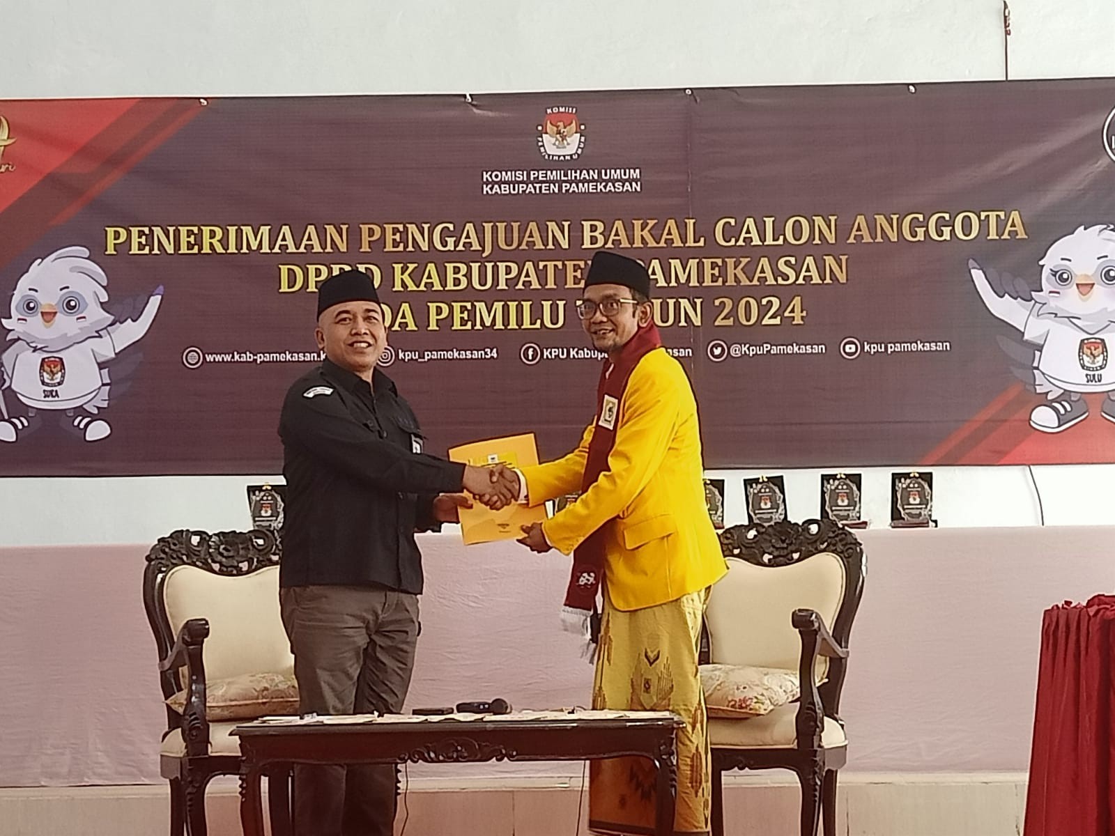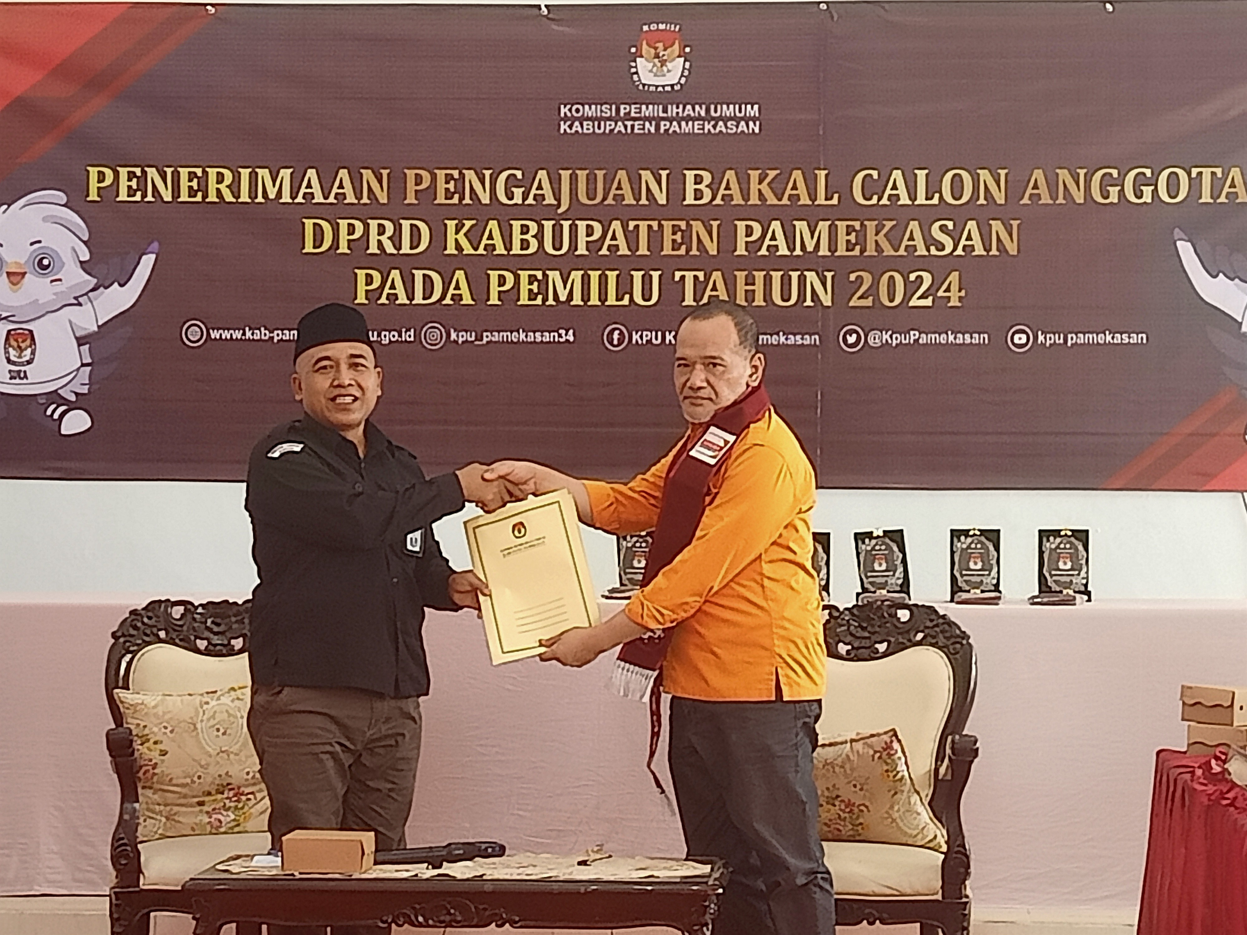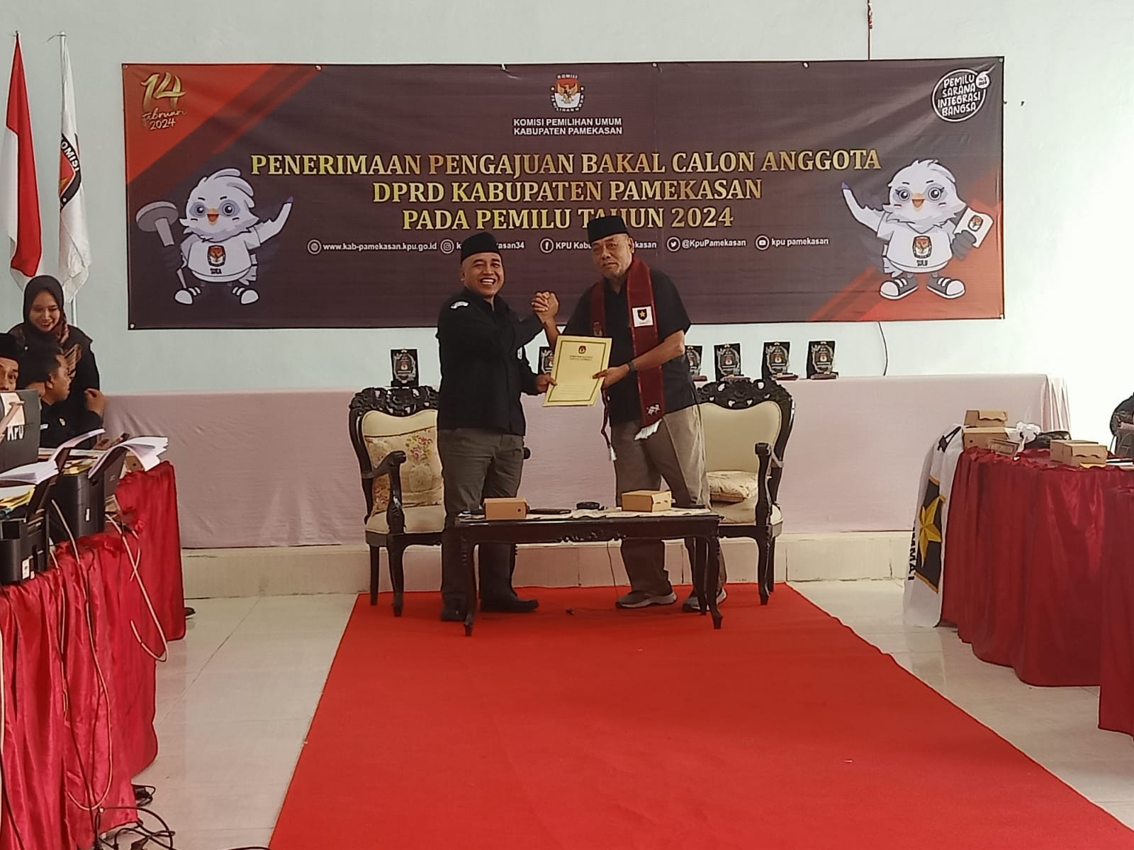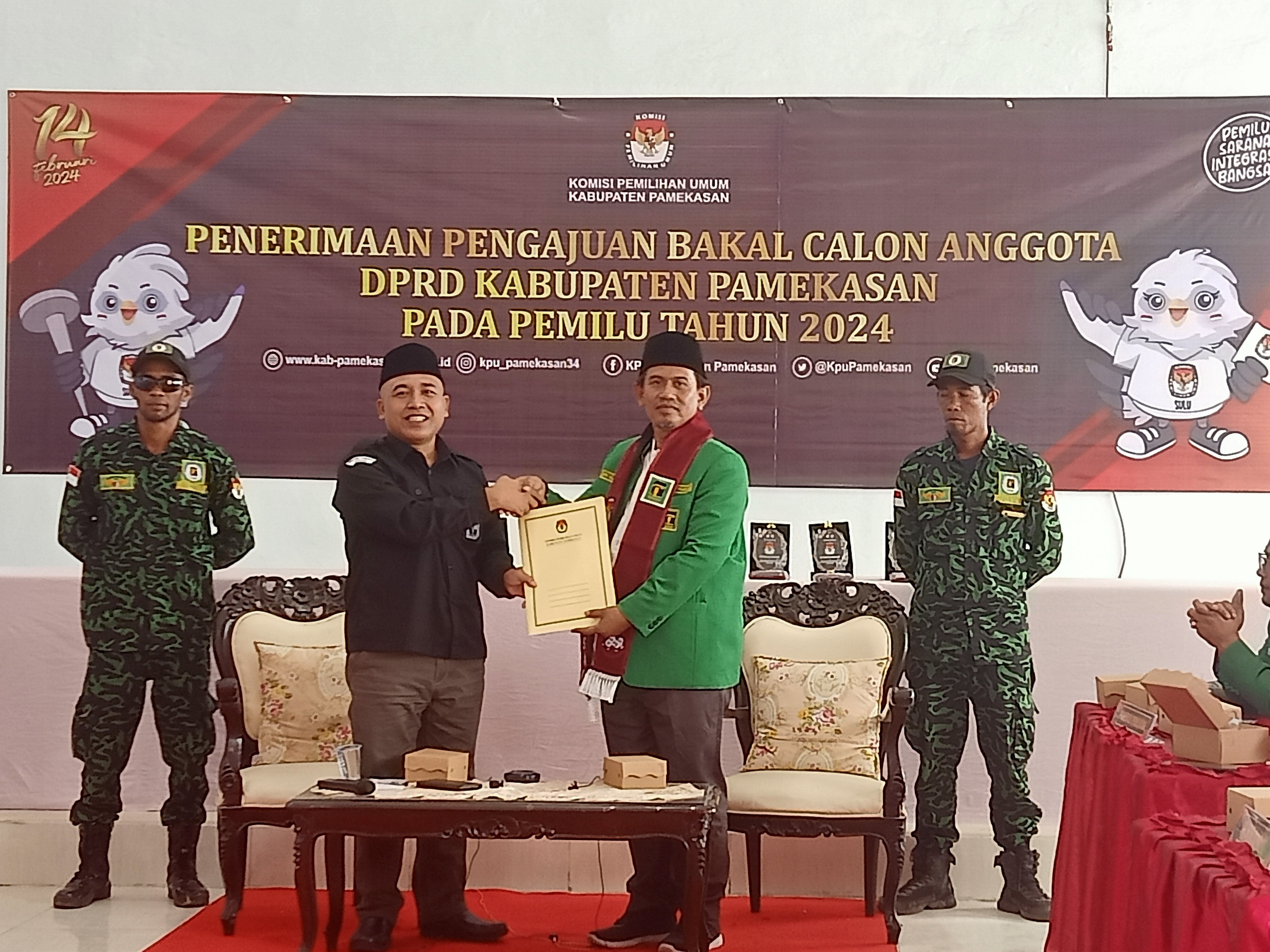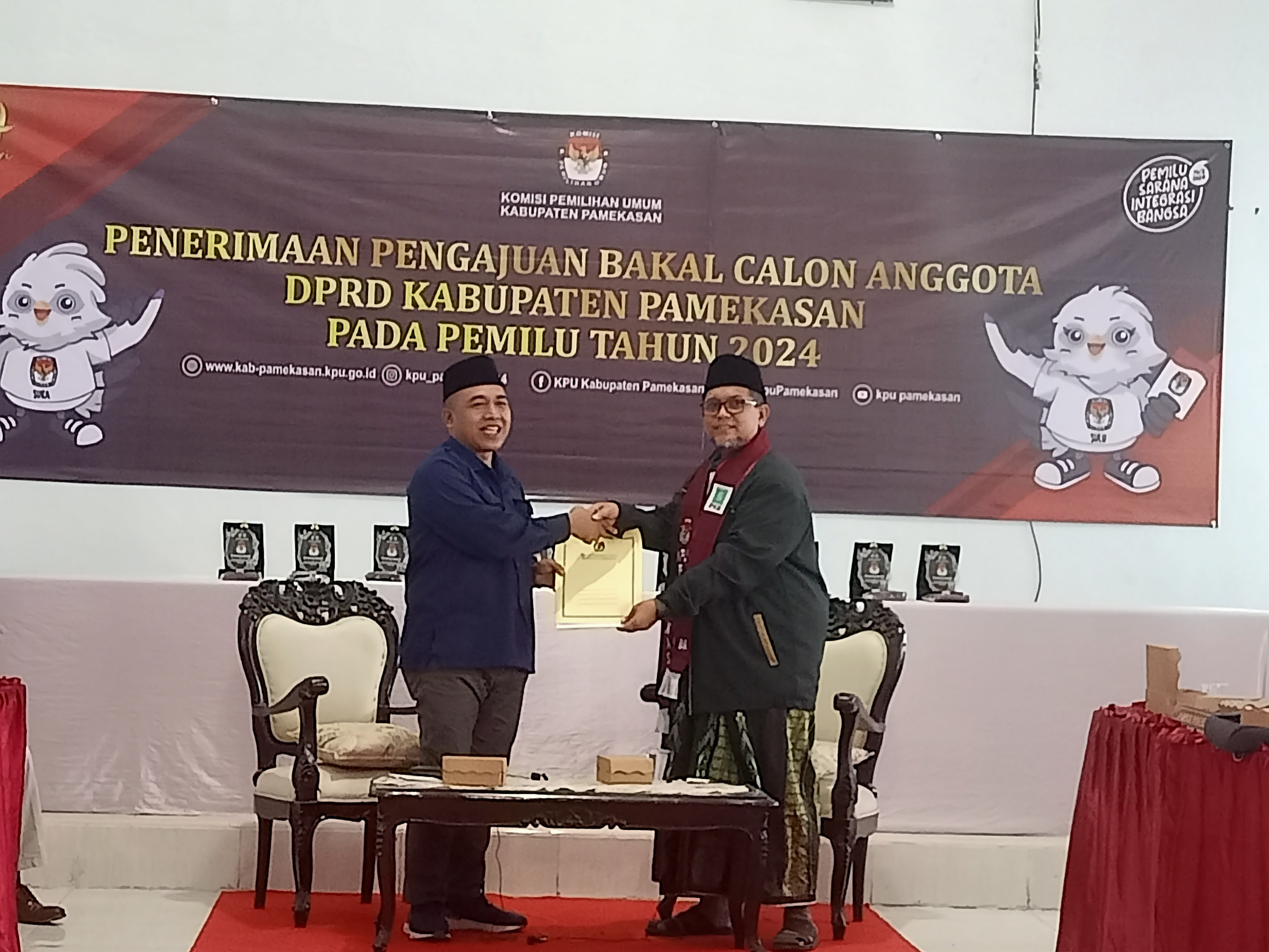 Pamekasan, kab-pamekasan.kpu.go.id – Partai Persatuan Pembangunan (PPP) mengajukan Bakal Calon Anggota DPRD Kabupaten Pamekasan dalam Pemilu Tahun 2024, Jumat (13/5/2023) di Kantor KPU Pamekasan. Pengajuan dilakukan oleh Ketua DPC Partai Persatuan Pembangunan (PPP) beserta Rombongan. Ketua KPU Pamekasan, Mohammad Halili mengucapkan selamat datang kepada seluruh rombongan dan menyampaikan maaf apabila dalam penyambutan ada yang kurang pas. Selanjutnya KPU akan memeriksa berkas yang disetorkan oleh Partai Persatuan Pembangunan (PPP). Halili juga menyampaikan terimakasih atas keaktifan parpol dalam sinergi dengan KPU Kabupaten Pamekasan sehingga diharapkan dalam proses pemeriksaan berkas nantinya tidak ada kendala yang berarti. dan akan dilanjutkan dengan pemeriksaan berkas oleh tim Verifikator melalui aplikasi SILON. “Setelah dilakukan pemeriksaan berkas dan dokumen Bacaleg DPRD Pamekasan dari Partai Persatuan Pembangunan (PPP). melalui aplikasi SILON dinyatakan dapat diterima,” jelas Halili.