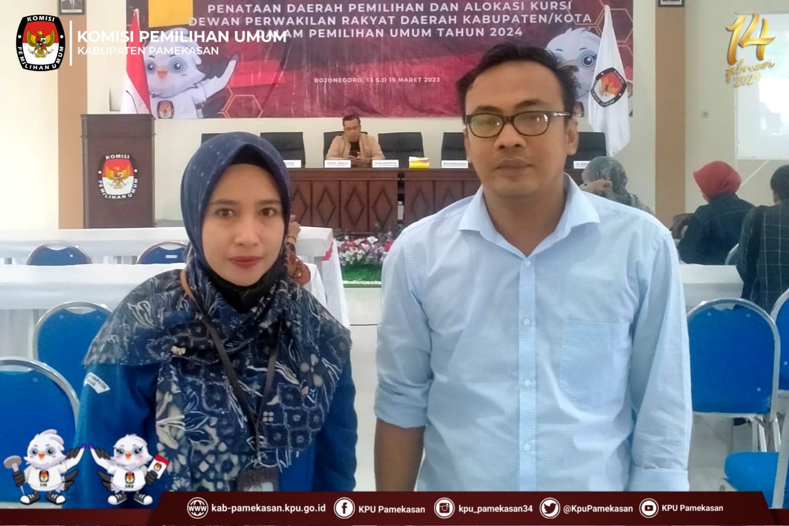 Bojonegoro - KPU Pamekasan mengikuti Rapat Evaluasi Penataan Daerah Pemilihan dan Alokasi Kursi Dewan Perwakilan Rakyat Daerah Kabupaten/Kota dalam Pemilihan Umum Tahun 2024, Senin (13/03/2023). Rapat evaluasi diselenggarakan oleh KPU Provinsi Jawa Timur bersama dengan KPU Kabupaten/Kota Se-Jawa Timur di Kantor KPU Bojonegoro.
