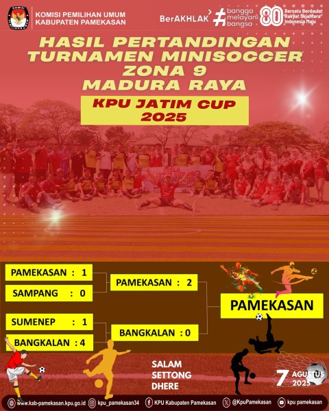 Selain itu, Amiruddin juga mengingatkan seluruh tim untuk mempersiapkan diri menghadapi kompetisi Mini Soccer KPU Jatim Cup yang akan digelar di Surabaya pada hari Kamis, 14 Agustus 2025. Tidak hanya itu, untuk memeriahkan bulan kemerdekaan, KPU Pamekasan juga akan mengadakan berbagai lomba internal Agustusan.