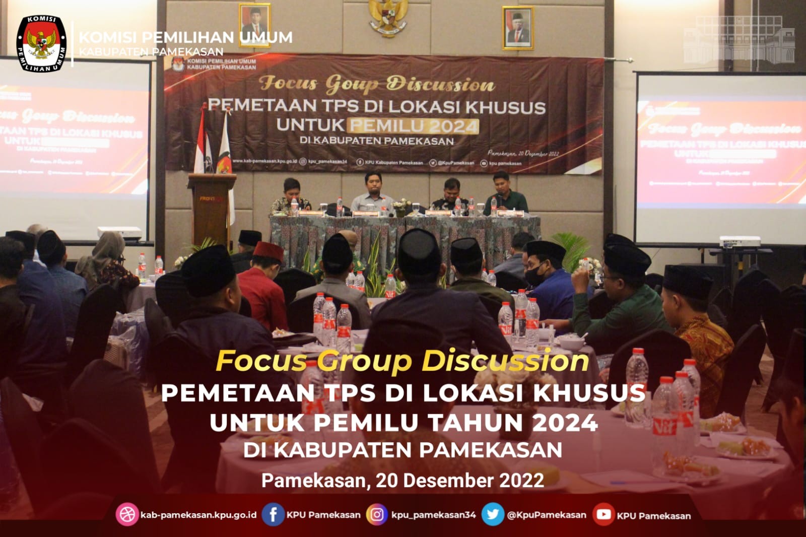 Pamekasan - Selasa (20/12/22) Komisi Pemilihan Umum Kabupaten Pamekasan Melaksanakan kegiatan FGD pemetaan TPS dilokasi khusus untuk pemilu tahun 2024 yang berlangsung di Ballroom hotel frontone Kabupaten Pamekasan.