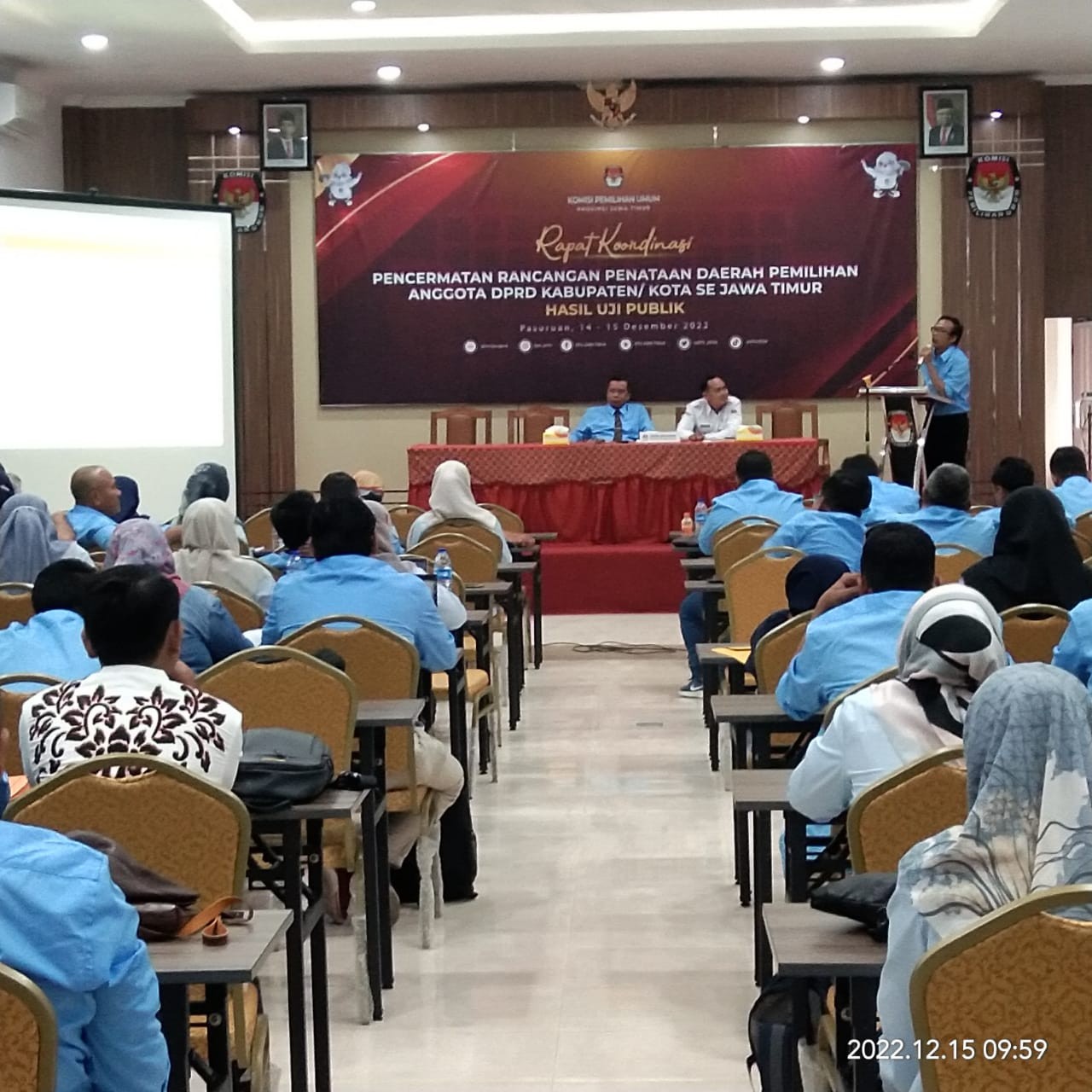 Pamekasan - Komisi Pemilihan Umum (KPU) Pamekasan, menggelar Uji Publik Rancangan Penataan Daerah Pemilihan (Dapil) di Gedung Prima Jaya Abadi, Larangan Tokol, Tlanakan, Selasa (13/12/2022) malam.
