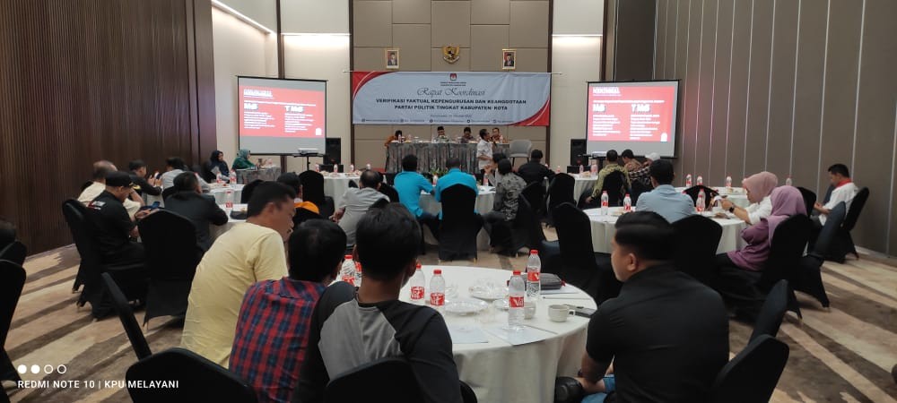 Pamekasan - Berdasarkan Peraturan Komisi Pemilihan Umum Nomor 4 Tahun 2022 tentang Pendaftaran,Verifikasi, dan Penetapan Partai Politik Peserta Pemilu Anggota Dewan Perwakilan Rakyat dan Dewan Perwakilan Rakyat Daerah, KPU Kabupaten Pamekasan melakukan Verifikasi Faktual untuk membuktikan pemenuhan persyaratan Kepengurusan Partai Politik calon peserta Pemilu tingkat Kota b. Memperhatikan keterwakilan perempuan paling sedikit 30% (tiga puluh persen) pada susunan Pengurus Partai Politik tingkat Kota c. Domisisli Kantor Tetap pada kepengurusan Partai Politik tingkat Kota sampai tahapan terakhir. Sebelum berangkat melakukan verifikasi faktual, KPU Pamekasan melaksanakan Apel terlebih dahulu yang dalam hal ini di isi arahan oleh anggota KPU provinsi Jawa timur Bapak Miftahul Razaq. Verifikasi faktual ini bertujuan untuk membuktikan kebenaran Ketua,Sekretaris, dan Bendahara atau sebutan lain yang tercantum dalam keputusan Pimpinan Partai Politik tingkat Kota yang dapat dibuktikan dengan kehadirannya disertai dokumen KTA dan KTPel atau KK. KPU Kabupaten Pamekasan dalam melakukan verifikasi faktual kepengurusan Partai Politik dengan cara mendatangi kantor tetap partai politik tingkat Kota sesuai dengan alamat kantor yang terdapat di Sipol.