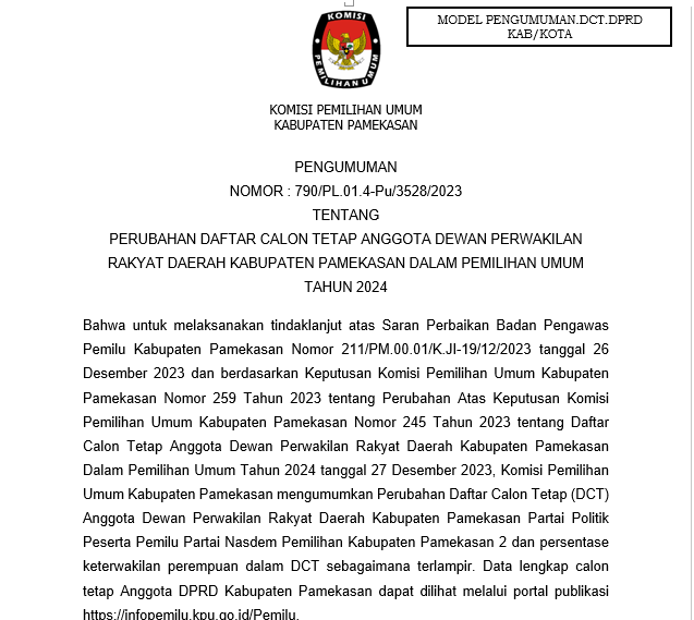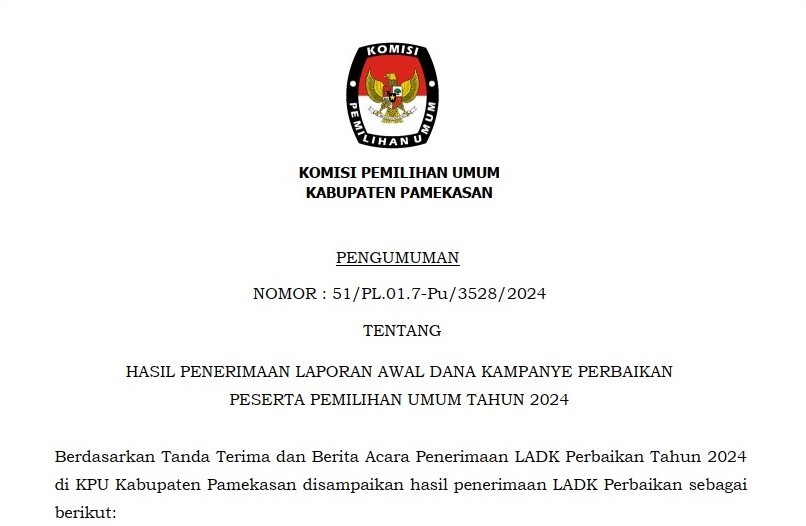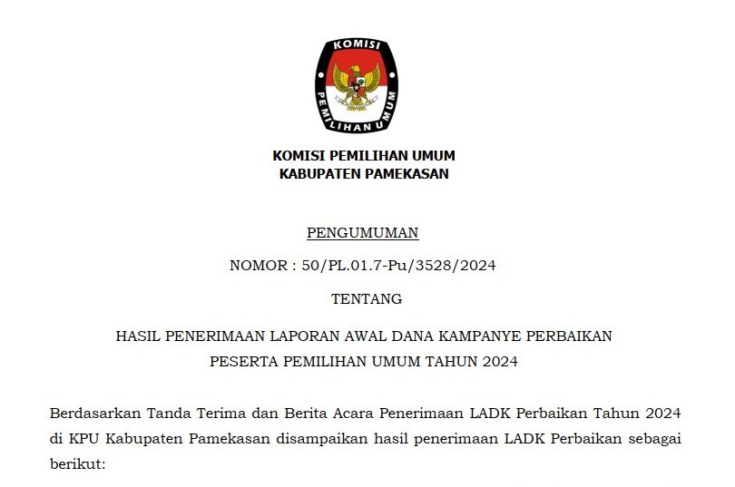 Berdasarkan Hasil Penelitian Administrasi Calon Anggota Kelompok Penyelenggara Pemungutan Suara untuk Pemilu Tahun 2024, disampaikan hal-hal sebagai berikut: